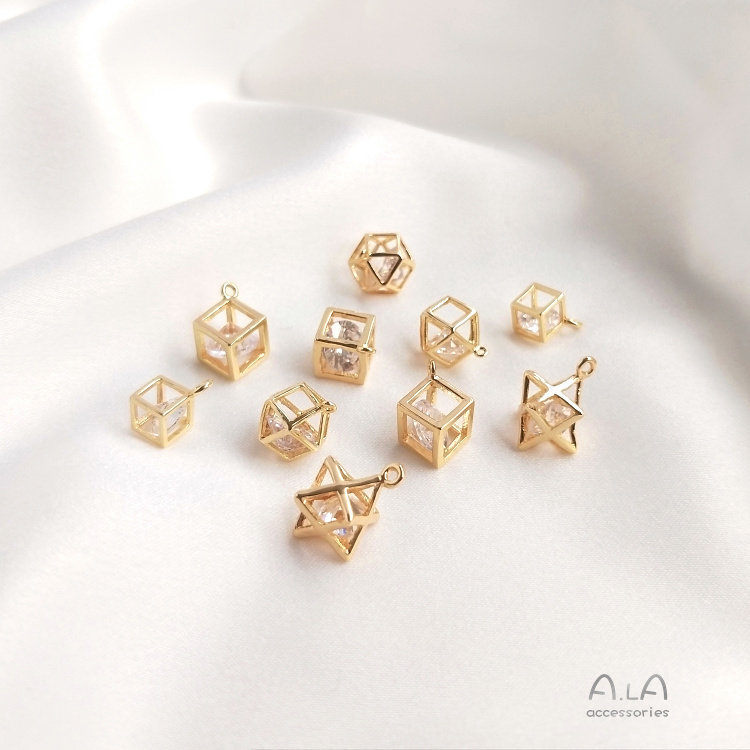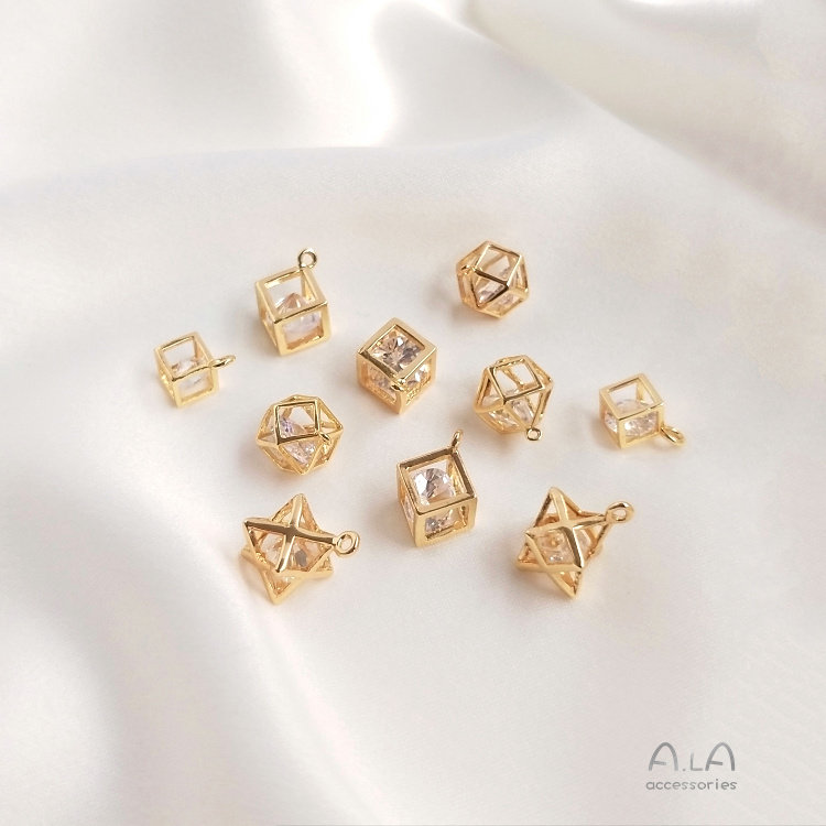 Трехмерная квадратная гибкая подвеска с цирконом, серьги, ожерелье, аксессуар, 14 карат, DIY