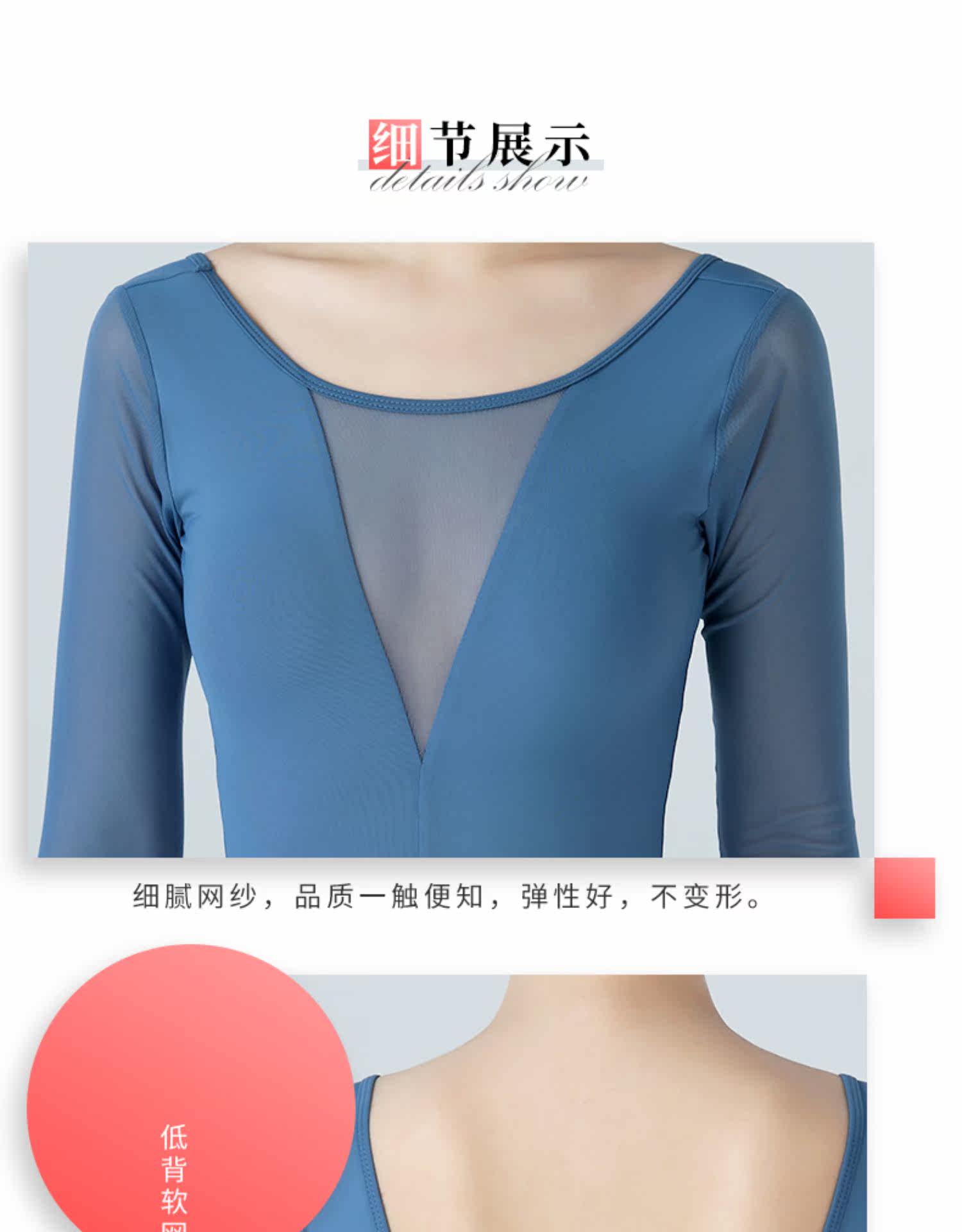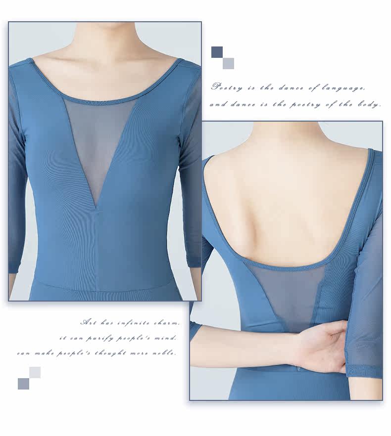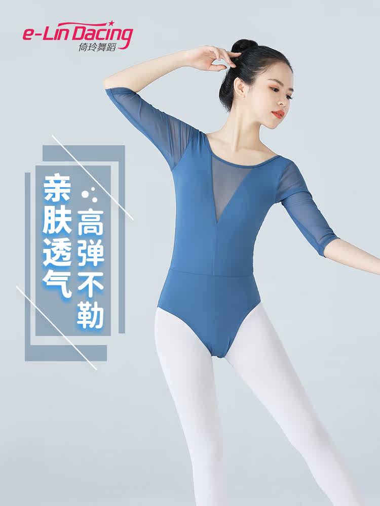 Балетная танцевальная одежда для взрослых среднего рукава сетка для тела женская аэробика гимнастика одежда с круглой круглой ошейной йогой одежда