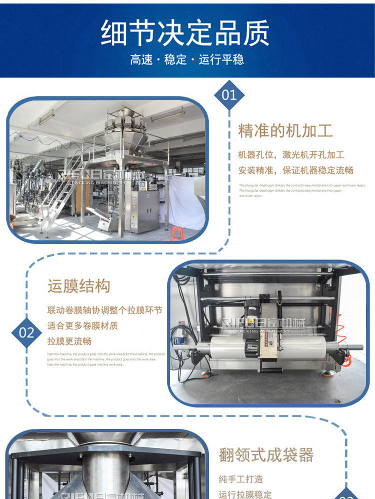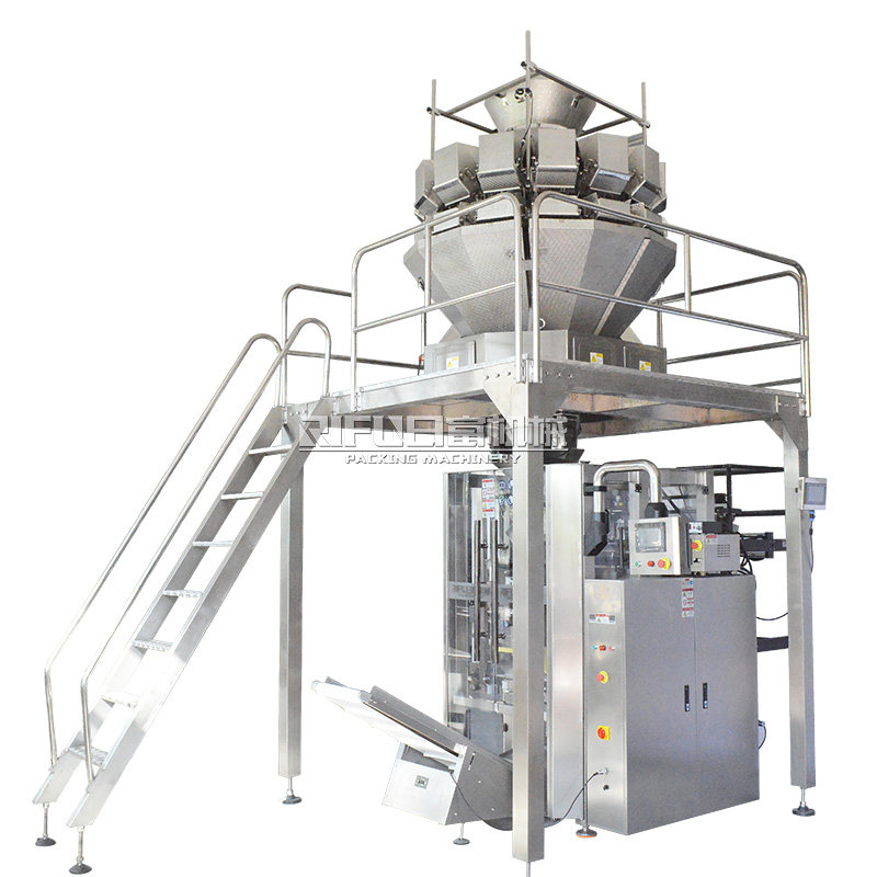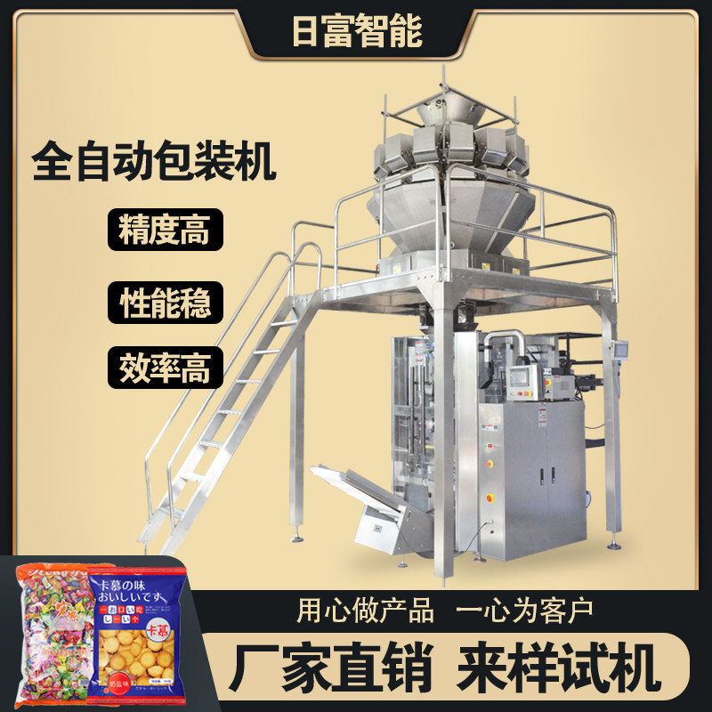 Полностью автоматическая машина для взвешивания и упаковки пищевых продуктов. Комбинированная весовая упаковочная машина для орехов, снеков, круп, овса, риса, кормов и чая.