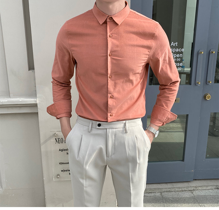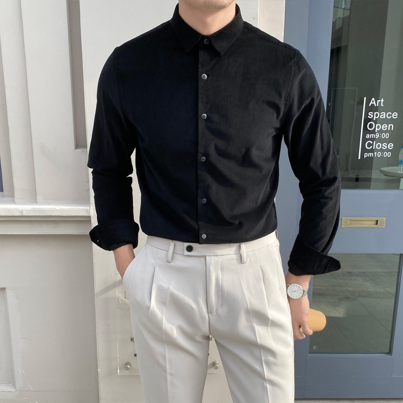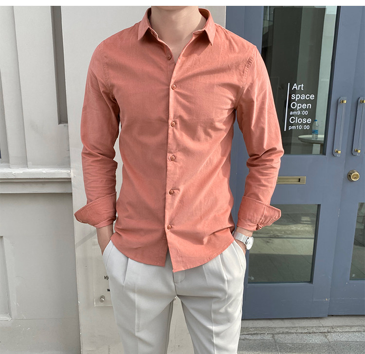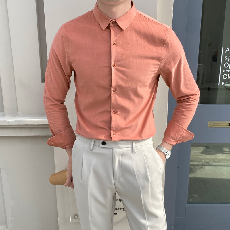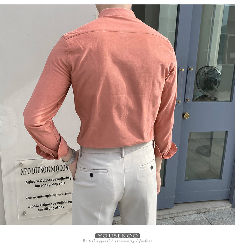 Трендовая рубашка, демисезонный розовый вельветовый пиджак классического кроя, в корейском стиле