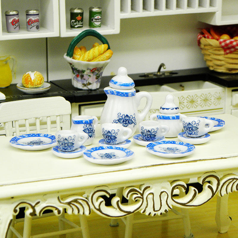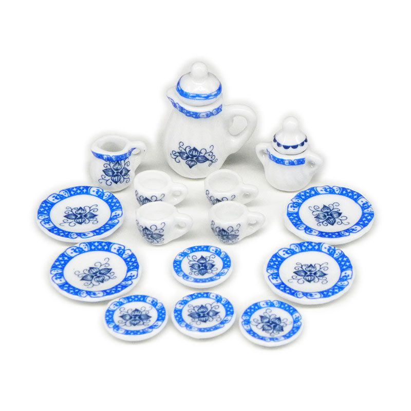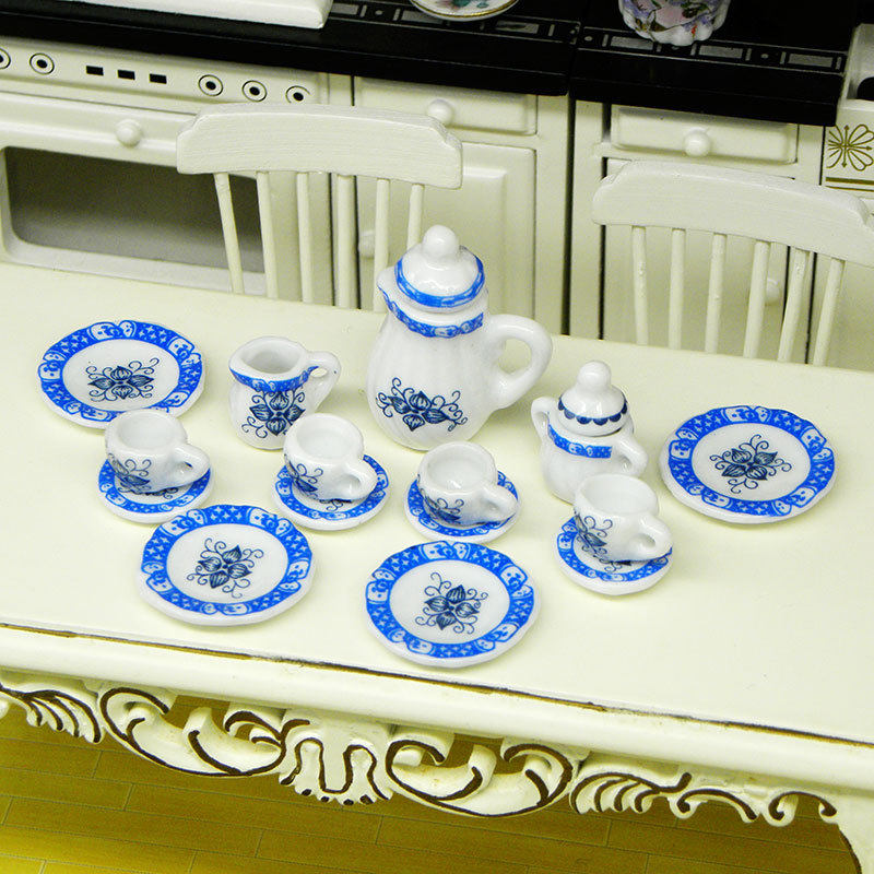 Маленький чайный сервиз, сине-белый комплект, игра с едой, семейная игрушка