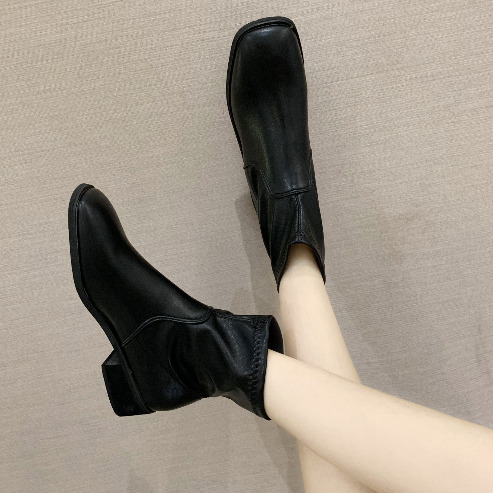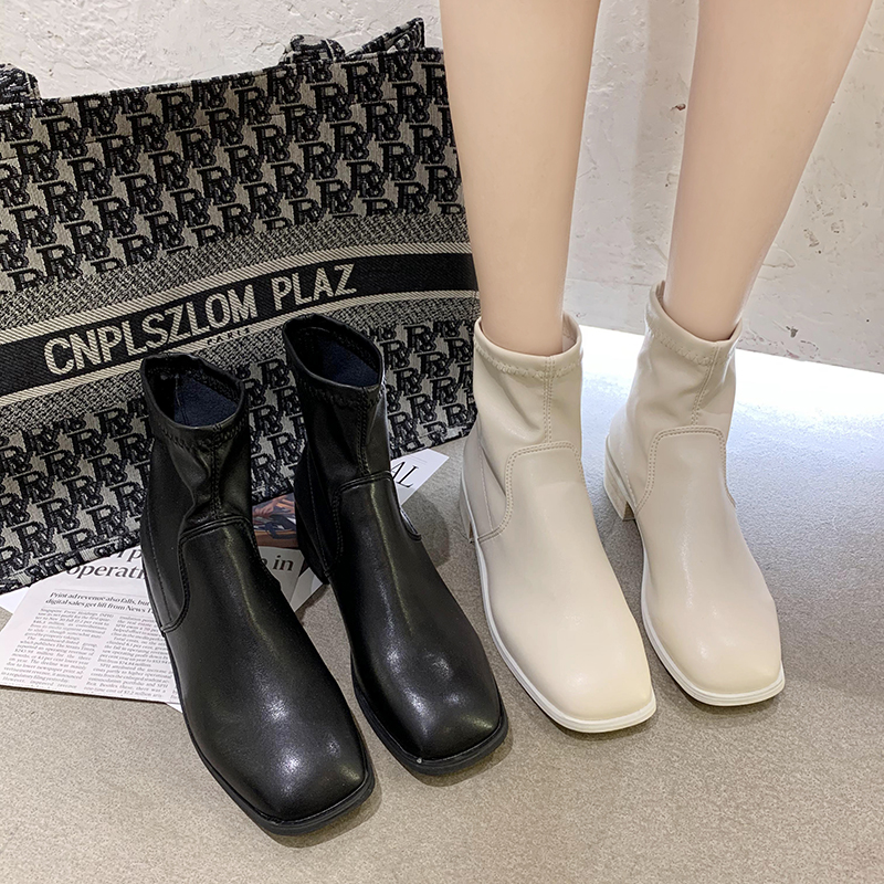 [TMALL] Рецепты европейских станций короткие ботинки женский 2020 новый толстый рукав на каблуке тонкие ботинки Martin женские и осенние одиночные ботинки