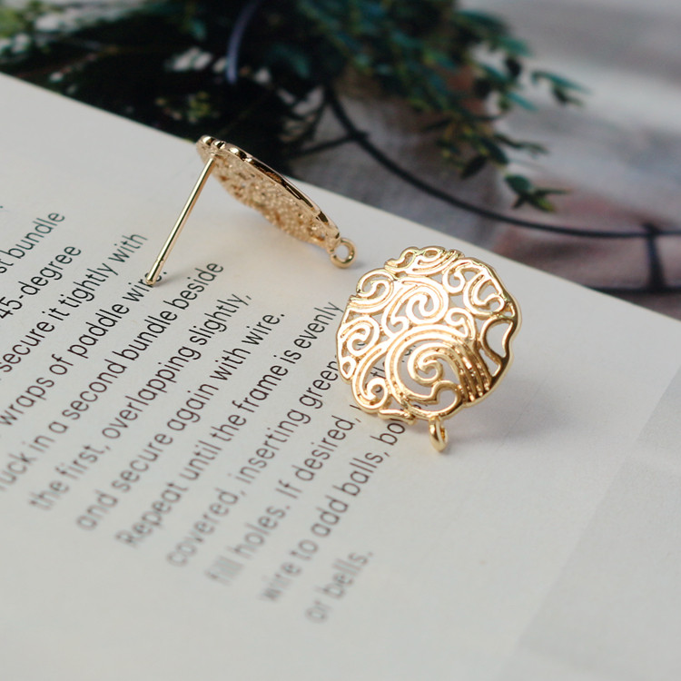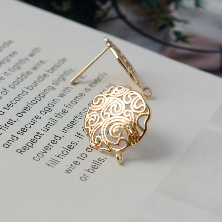 14 тыс. Золото, защищенное от поляного цветочного ремня, висящее кольцо 925 Серебряное игольчатое уш