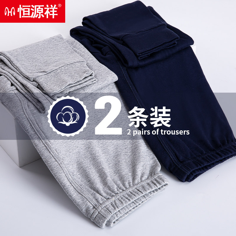 恒源祥 Мужское хлопковое тонкое термобелье, удерживающие тепло хлопковые штаны, оверсайз, для среднего возраста