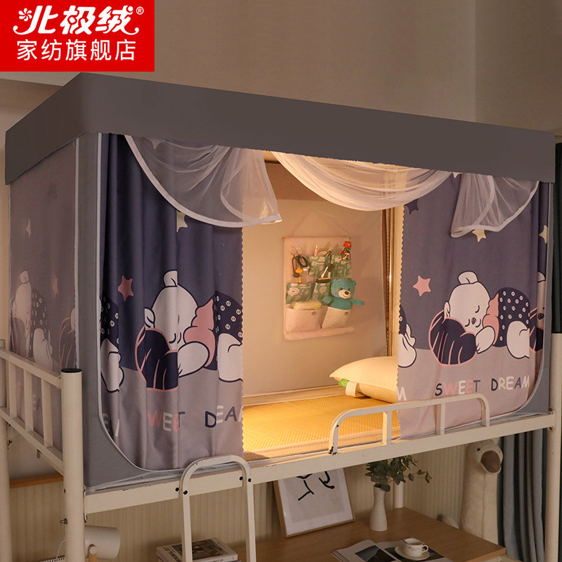 Студенческая общежития для затенения ткани для комаров комаров, укладывая все -на одну полноценную девушки из университетской спальни, чтобы встать с постели