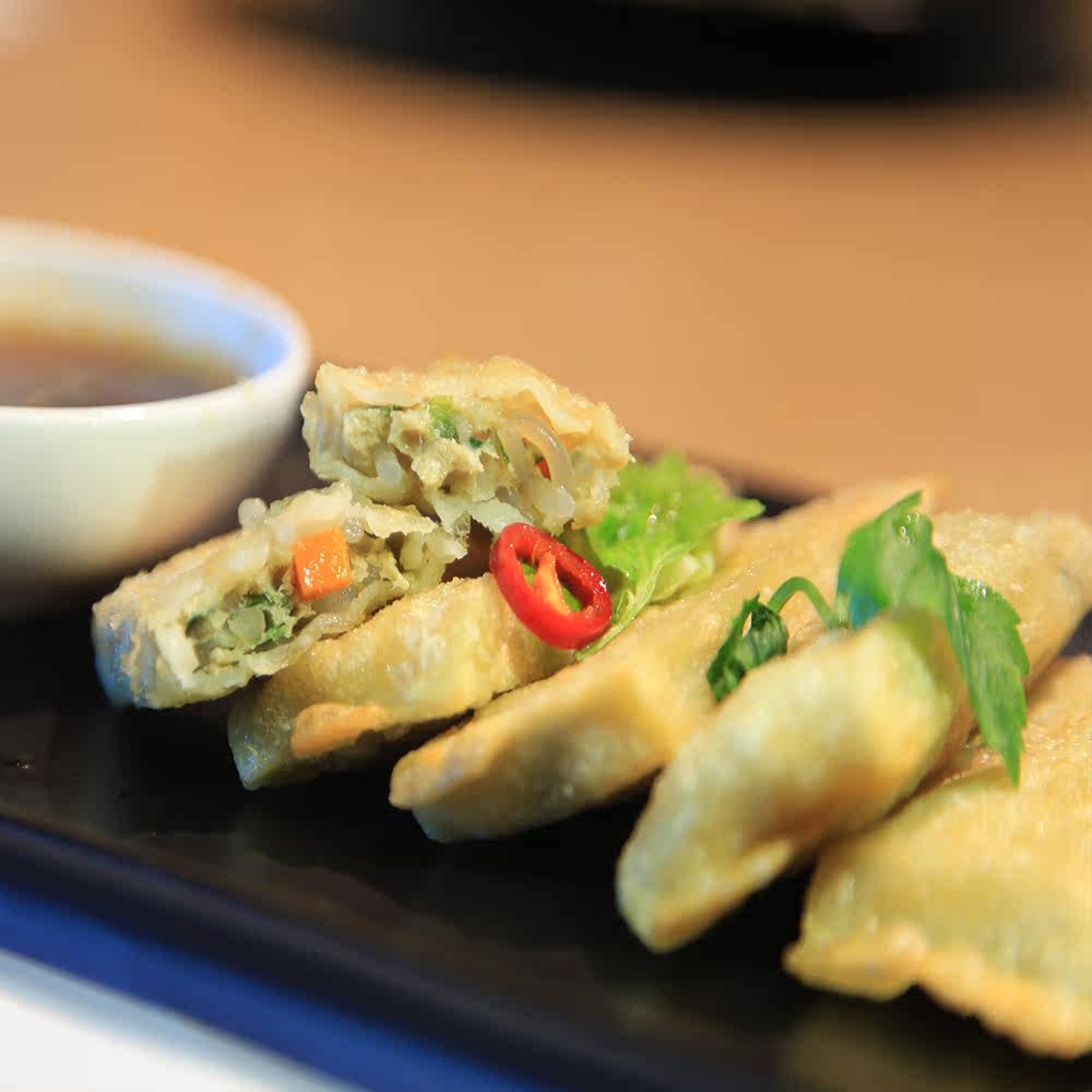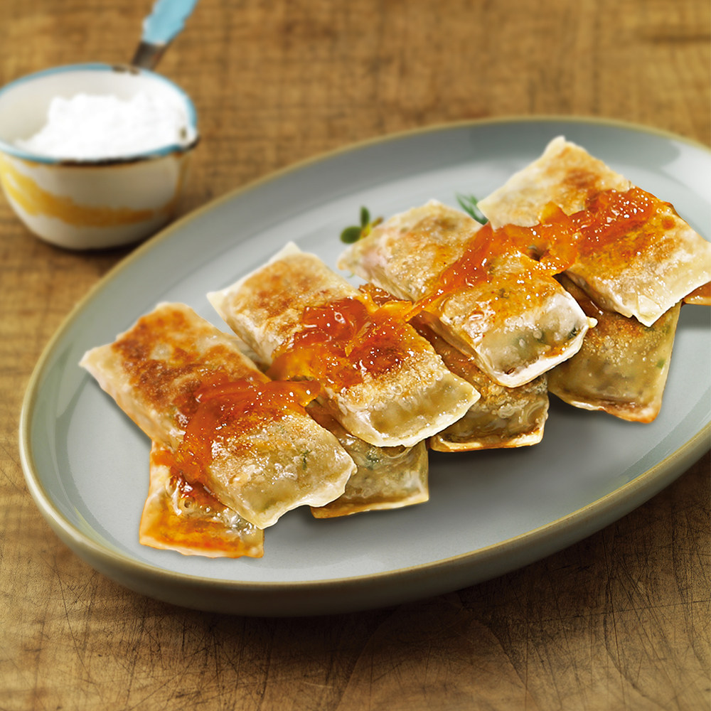 Хрустящие пельмени с корейской вермишелью Bibigo, обжаренные на сковороде 250г (10 шт.)