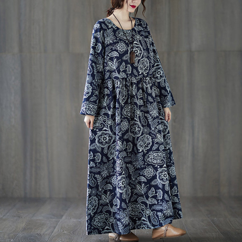 Весенний лонгслив, ретро этническая юбка, большой размер, свободный крой, этнический стиль