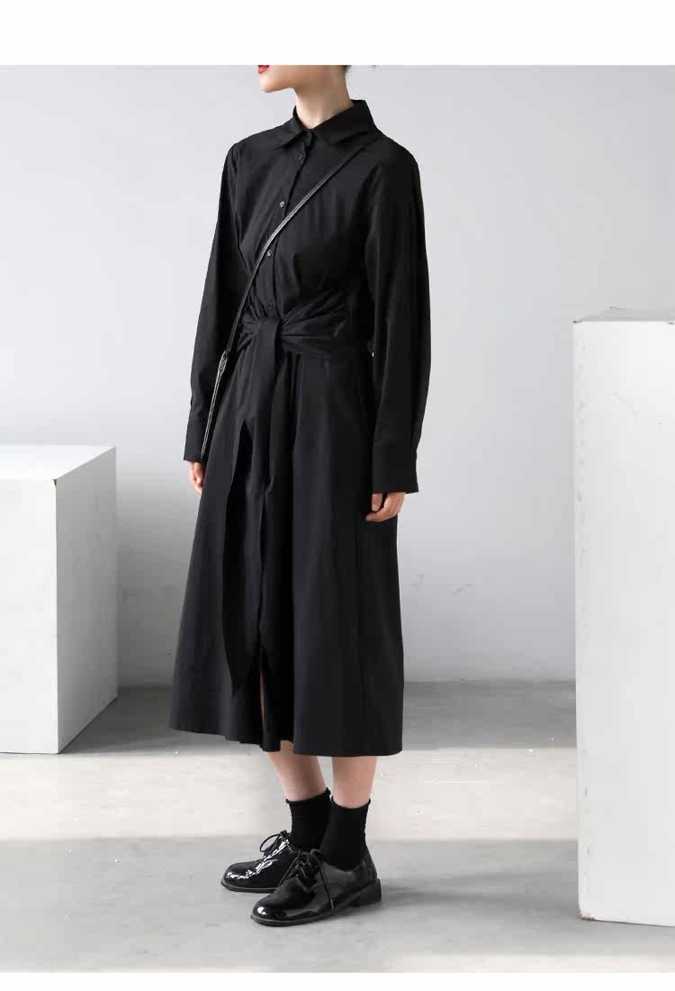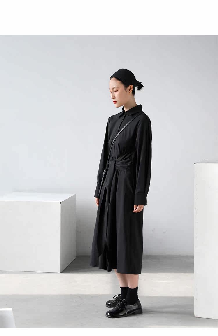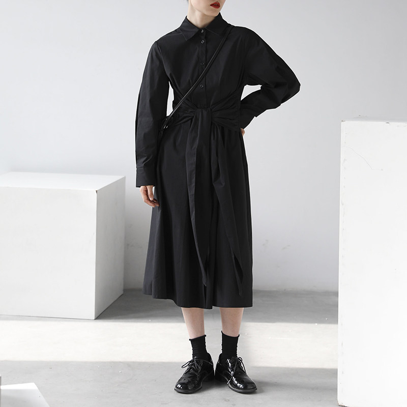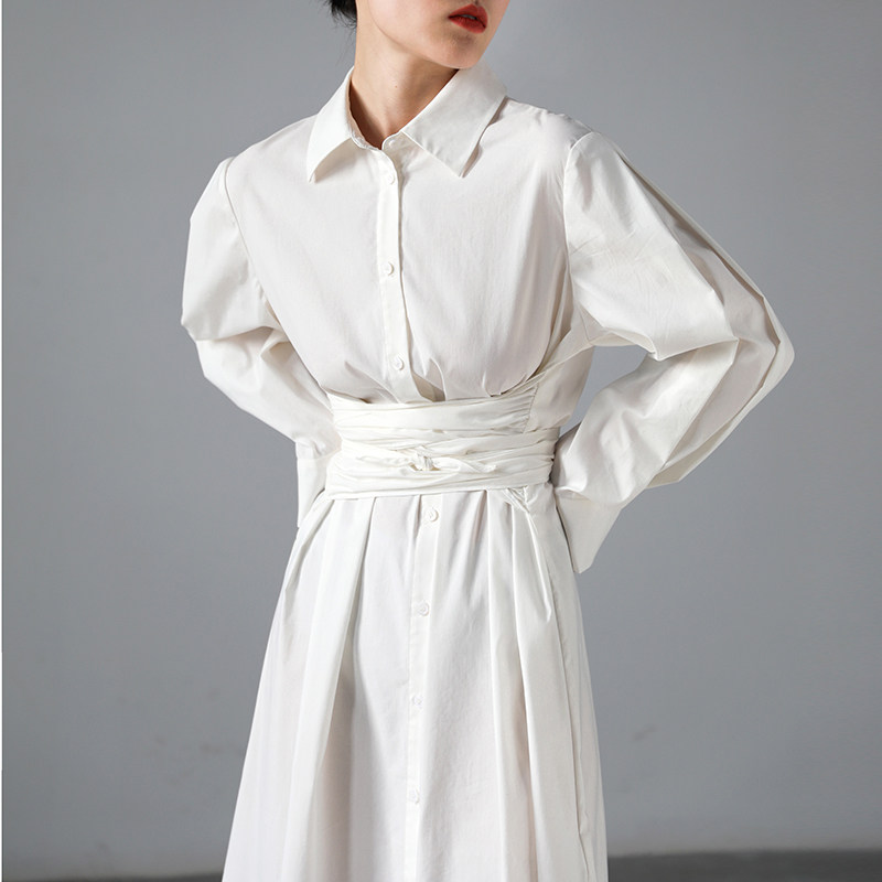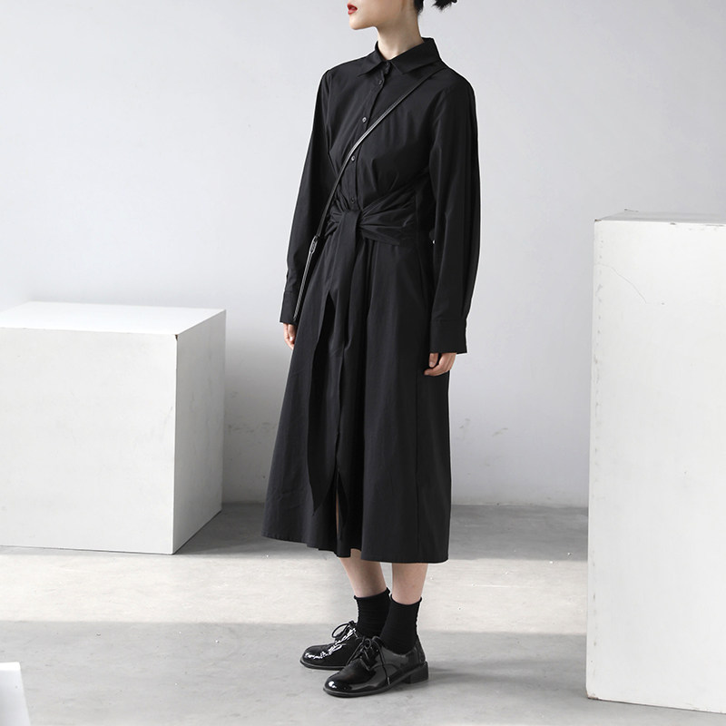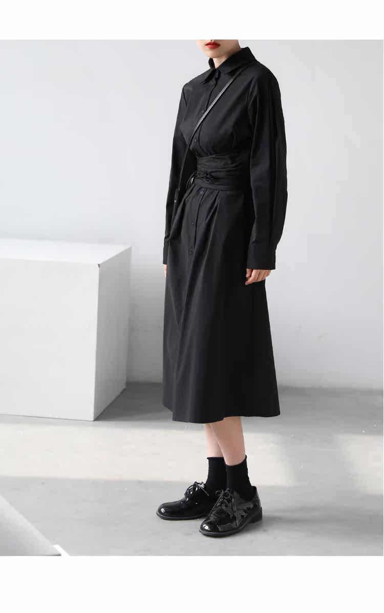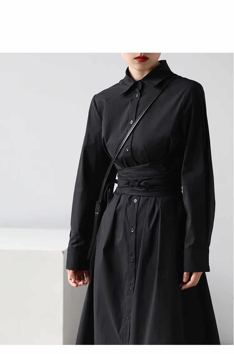 Осеннее приталенное платье, дизайнерская рубашка, длинная юбка, 2020, тренд сезона