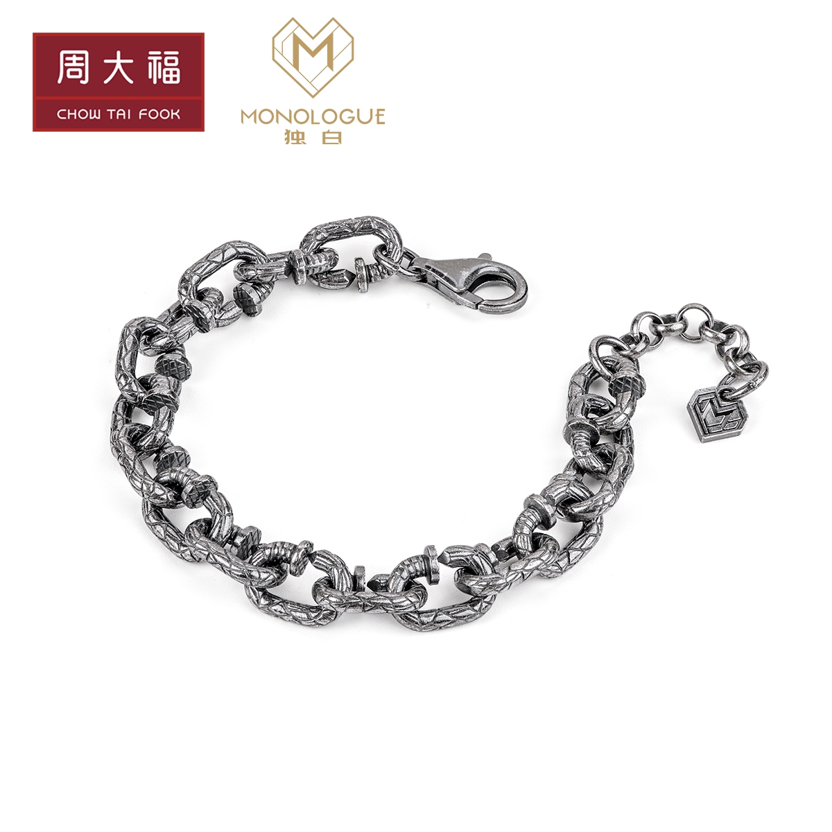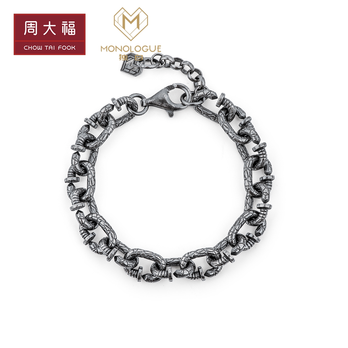 周大福 Серия монологий серии ретро -серебряный серебряный гвоздь нейтральный браслет MB67 Выбор