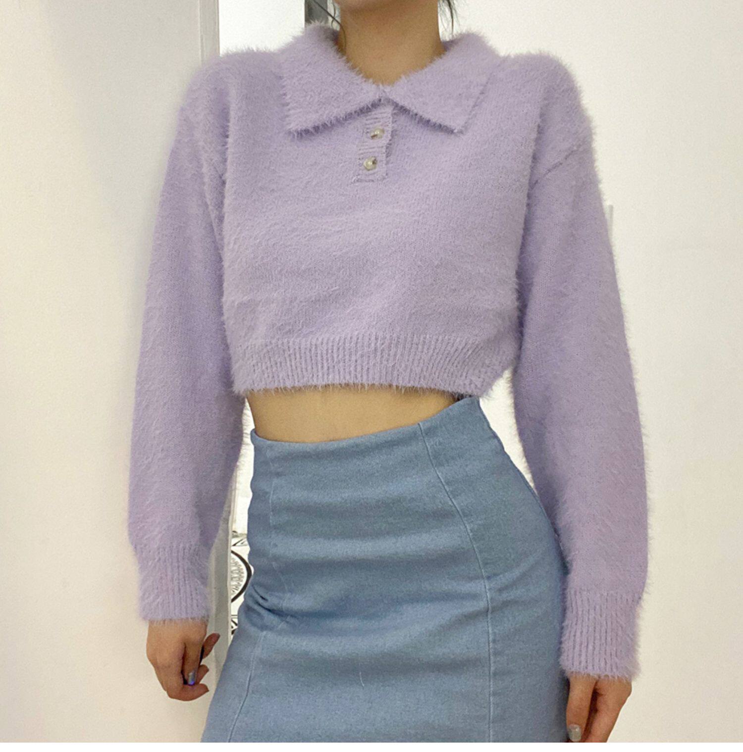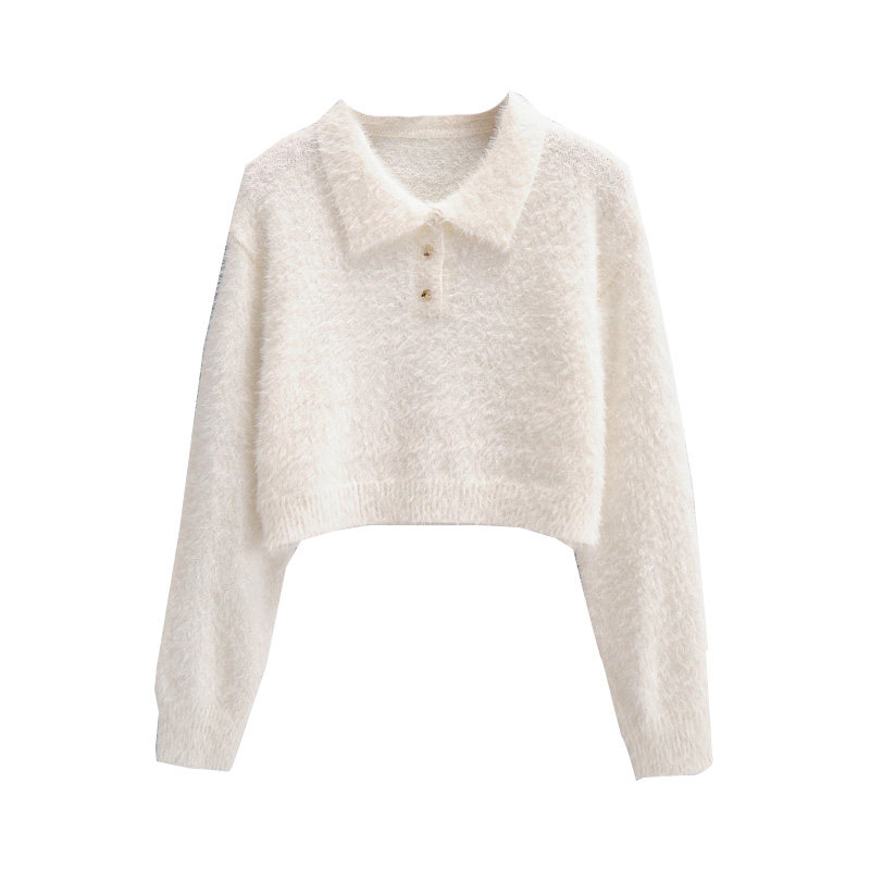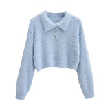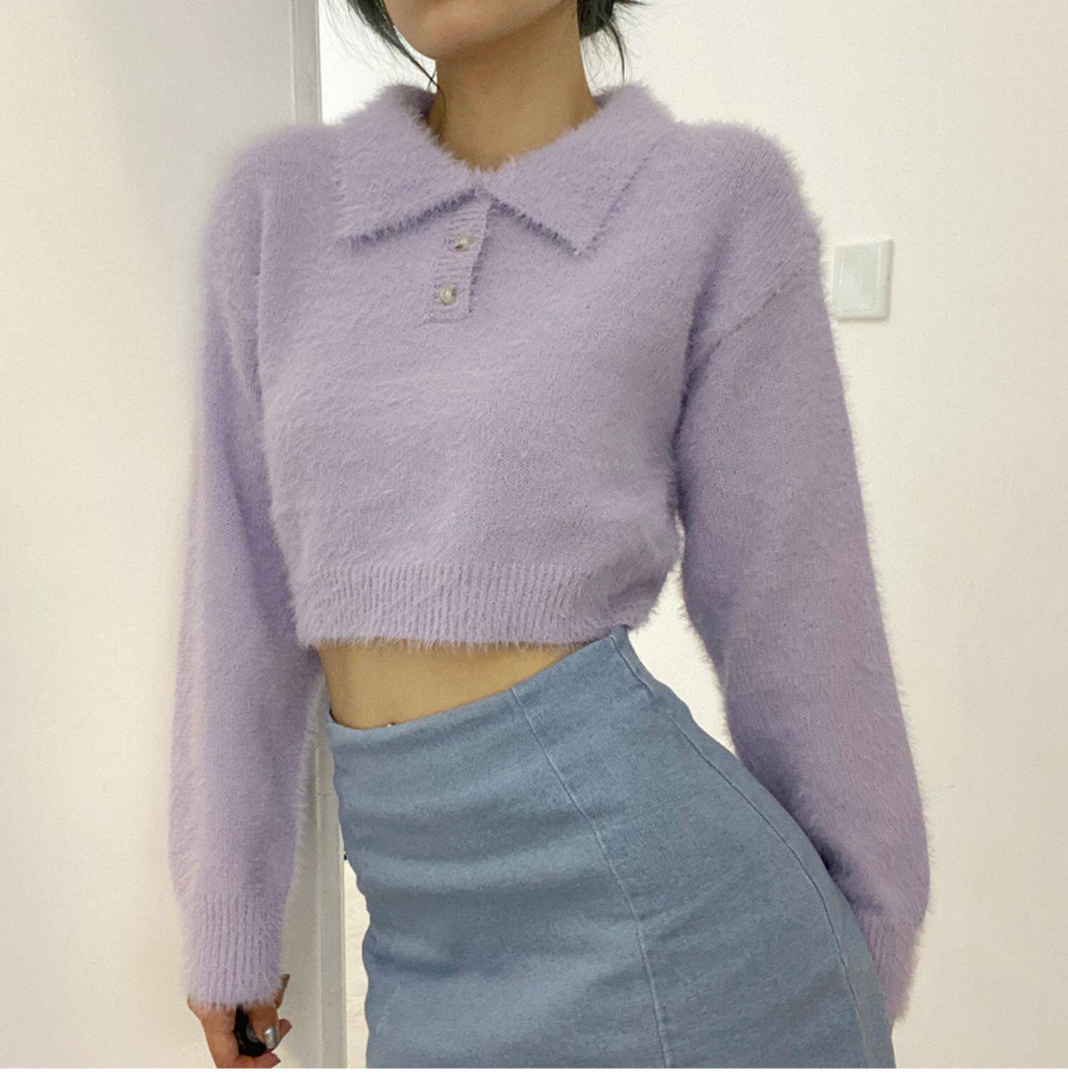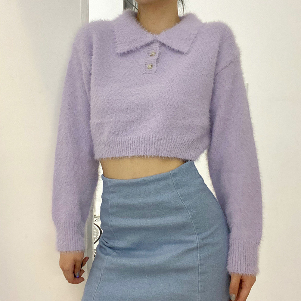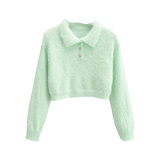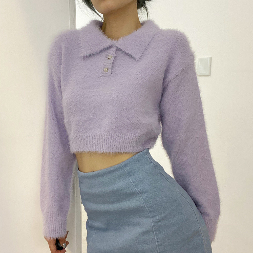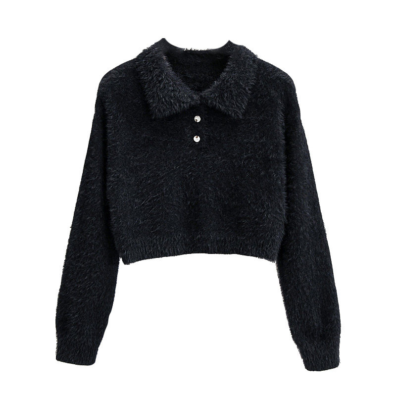 Дизайнерский ретро короткий бархатный лонгслив, трикотажный свитер, тренд сезона, воротник поло