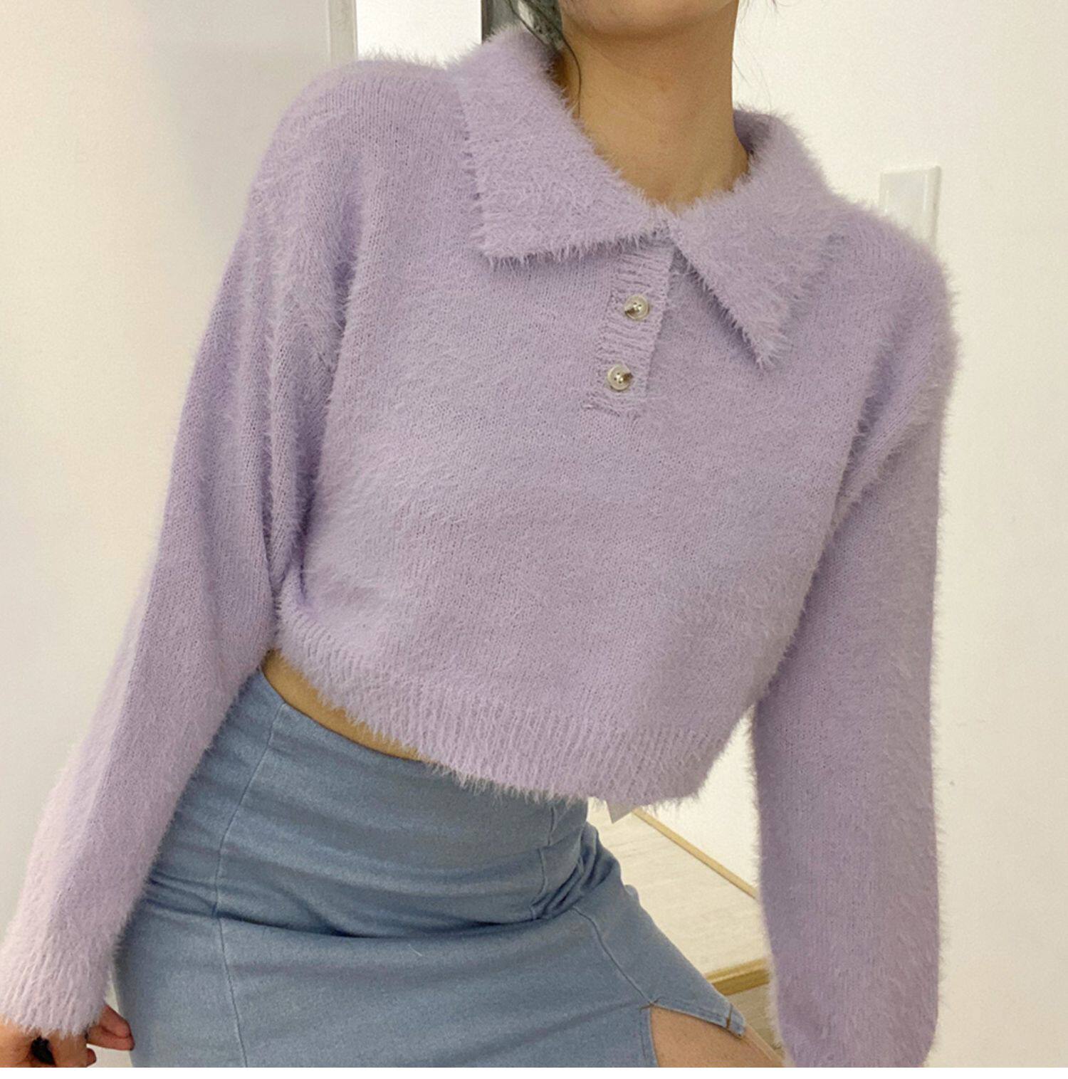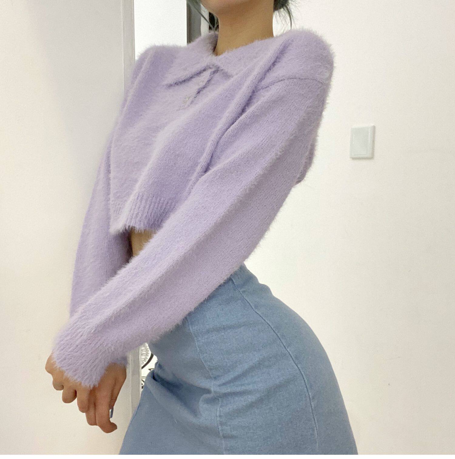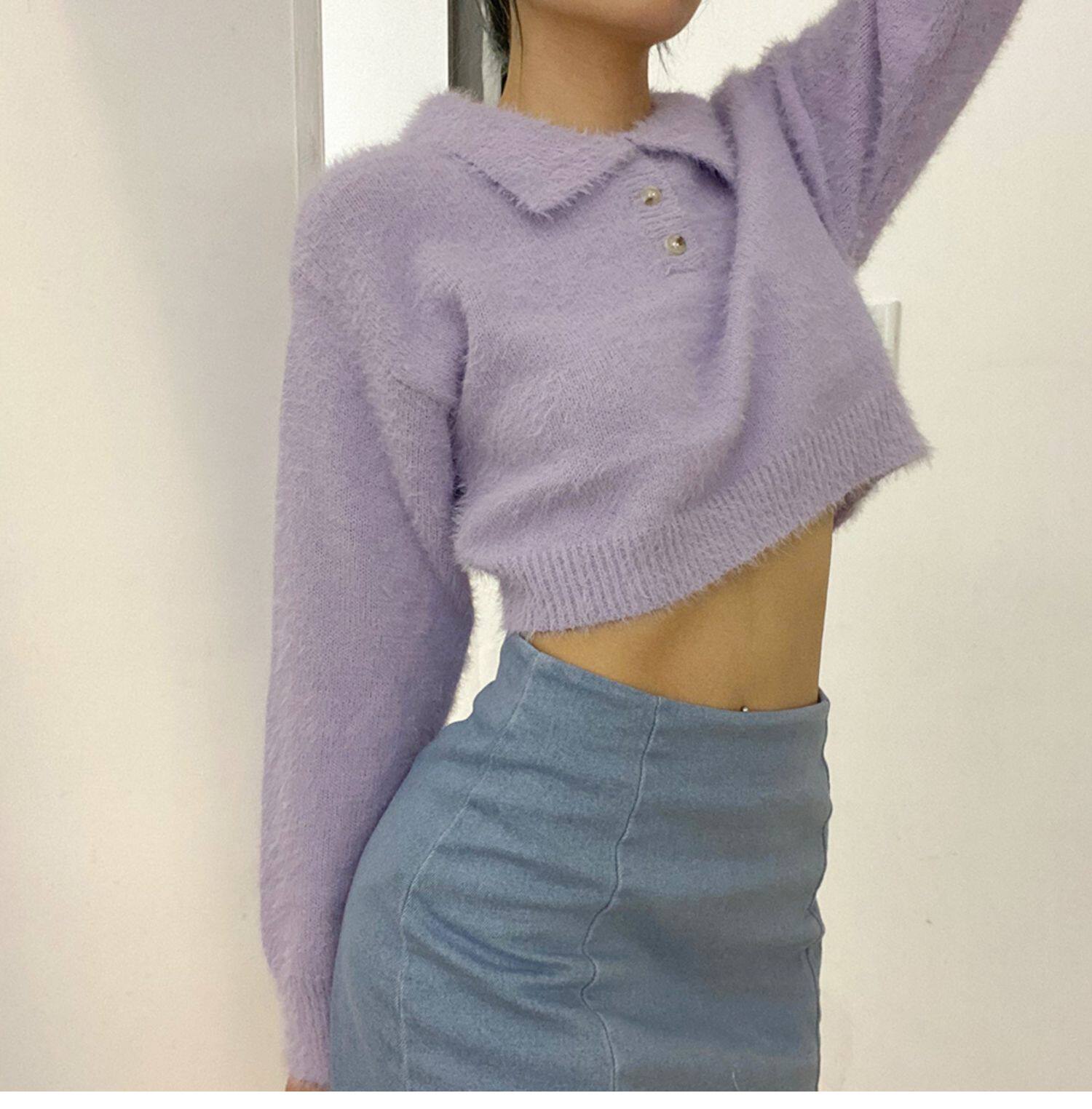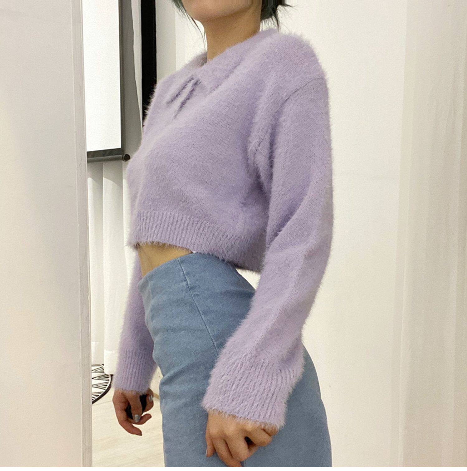 Дизайнерский ретро короткий бархатный лонгслив, трикотажный свитер, тренд сезона, воротник поло