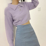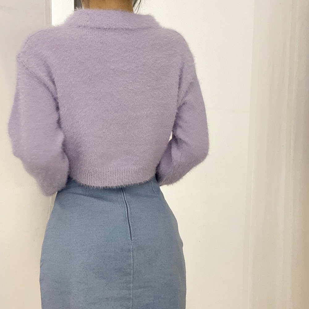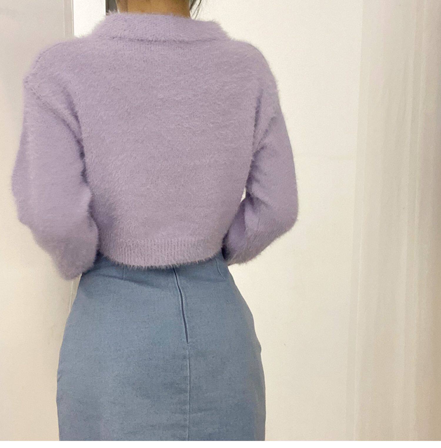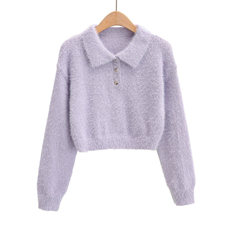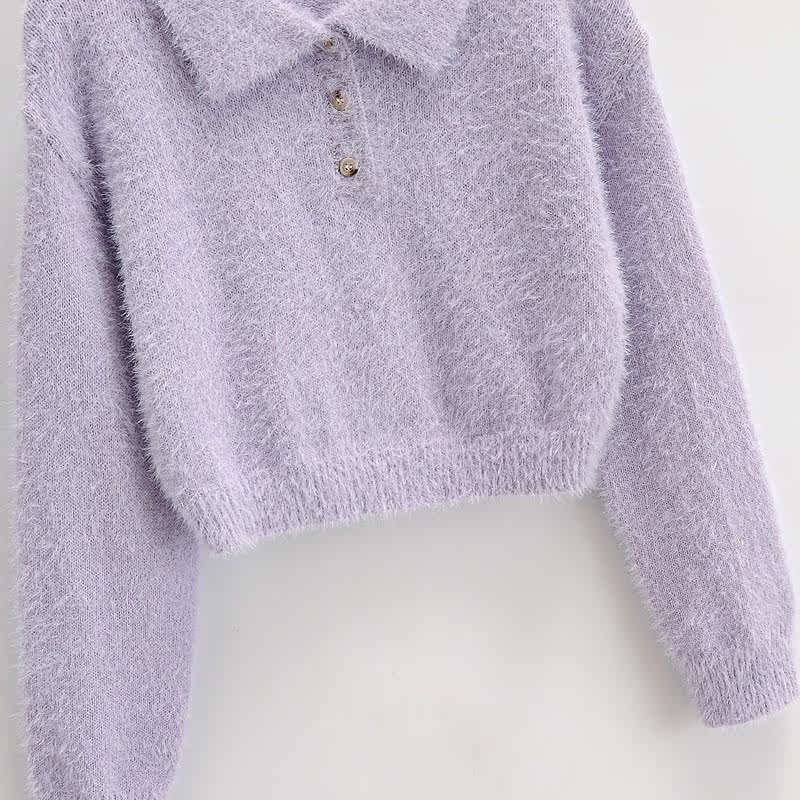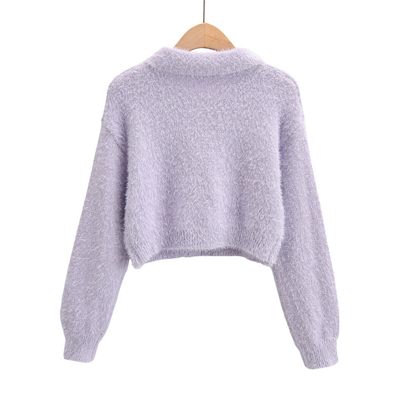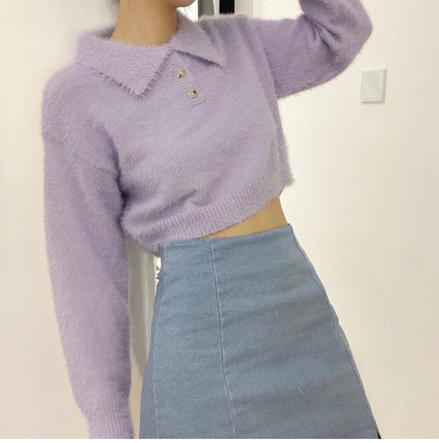 Дизайнерский ретро короткий бархатный лонгслив, трикотажный свитер, тренд сезона, воротник поло