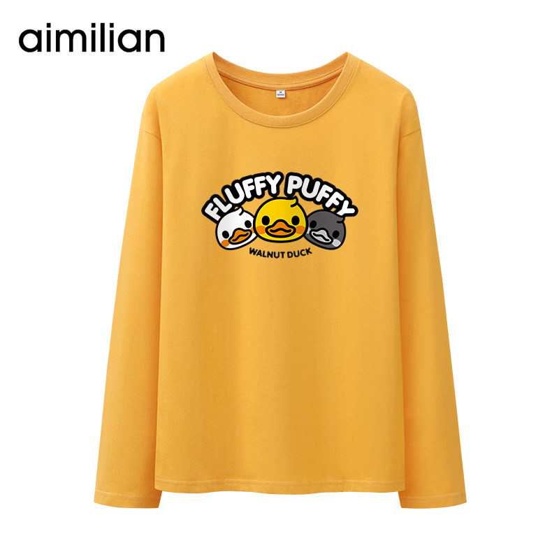 Хлопковый демисезонный желтый мультяшный лонгслив, 2020 года, свободный крой