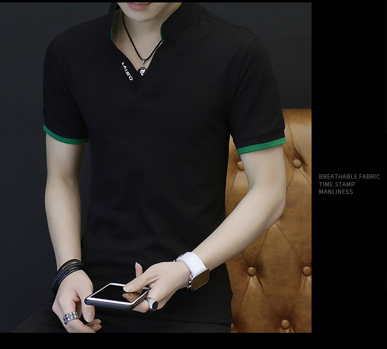 Хлопковая брендовая трендовая летняя одежда, футболка polo, коллекция 2023, короткий рукав, V-образный вырез, в корейском стиле