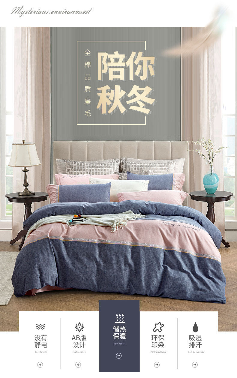 黛富妮 Хлопковый комплект, хлопковое одеяло, пододеяльник, демисезонная хлопковая удерживающая тепло простыня, 4 предмета, увеличенная толщина, 1.8м