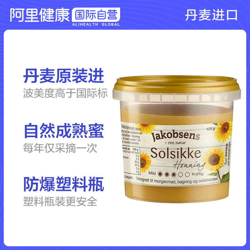 Дания импортировал Jakobsens, питающие желудок чистый натуральный дикий молотый молот, кристаллический меда подсолнечника 425G