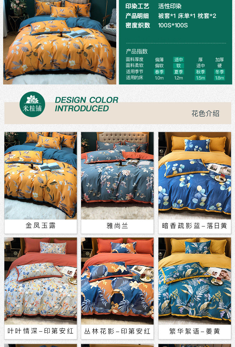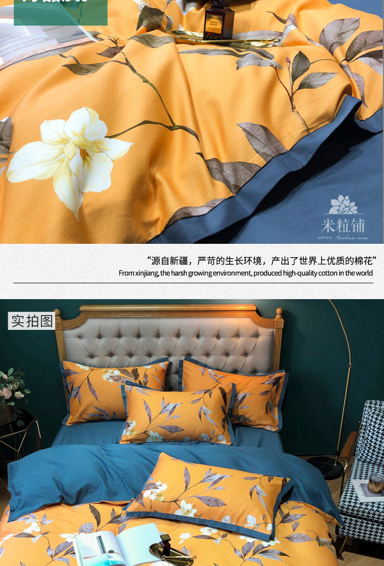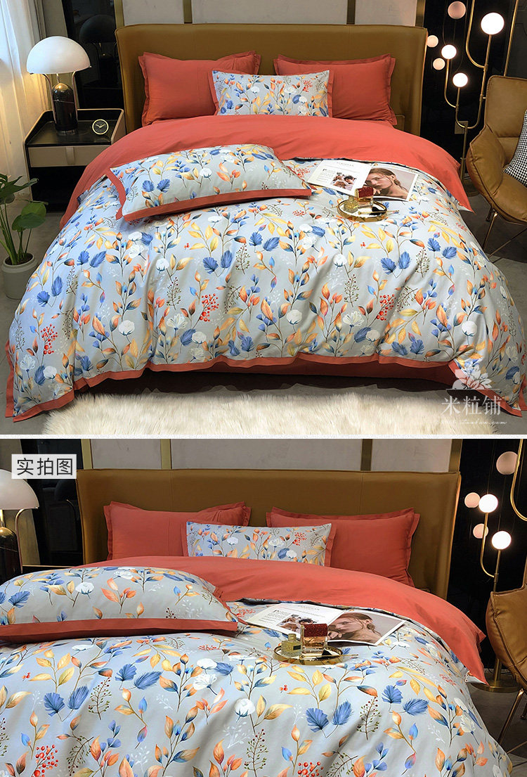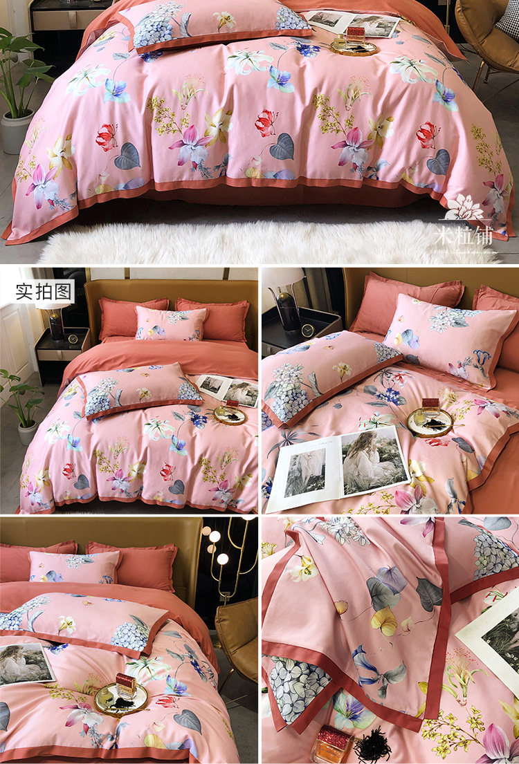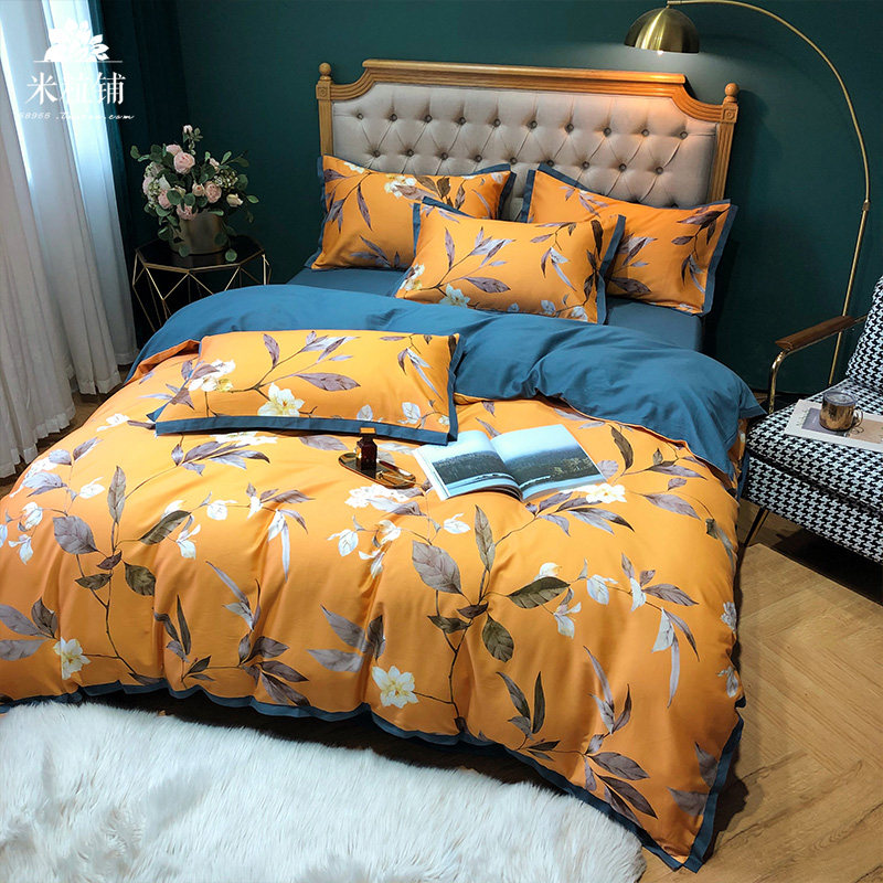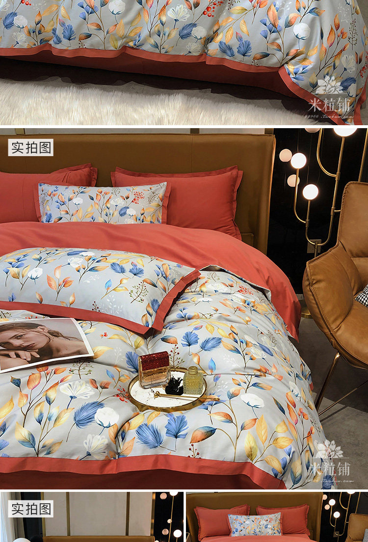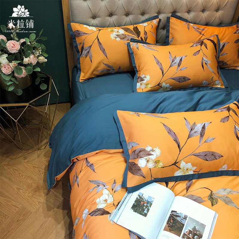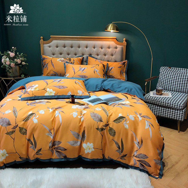 Хлопковый комплект, демисезонная простыня, в американском стиле, легкий роскошный стиль, 100 шт, 4 предмета, увеличенная толщина
