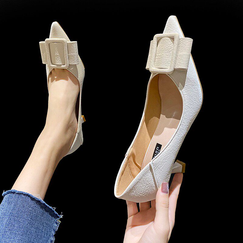 Высокие весенние универсальные туфли на высоком каблуке, обувь с заостренным носом, французский стиль, популярно в интернете