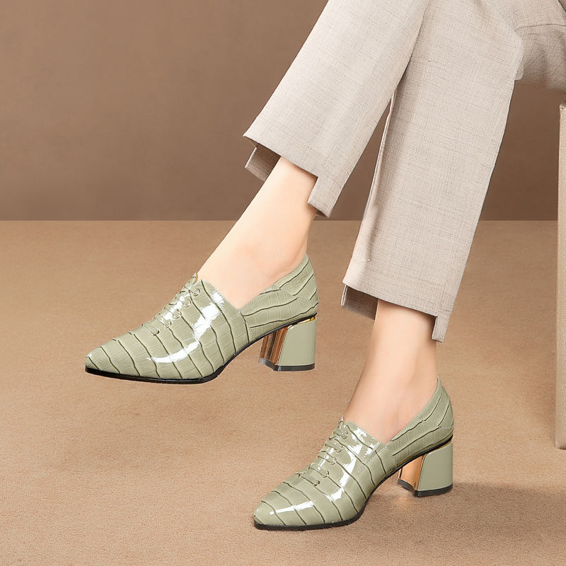 Весенняя универсальная обувь с заостренным носом на высоком каблуке, коллекция 2021, тренд сезона, из натуральной кожи, большой размер