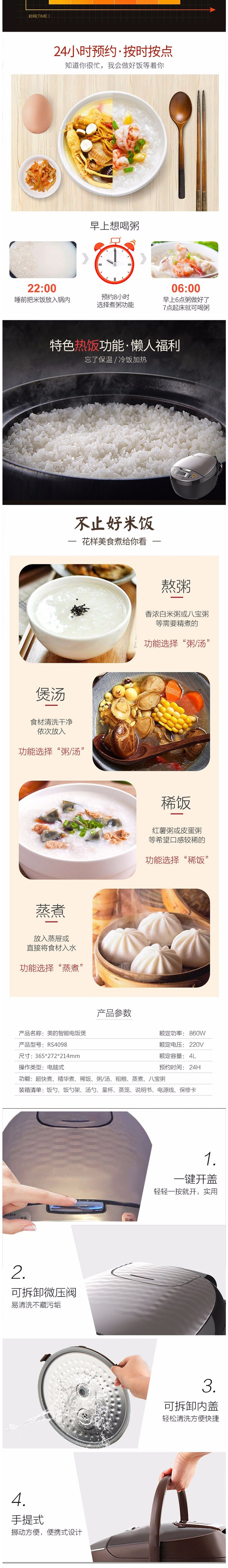 Midea Smart Rice Piron 4l 4L НЕПОЛЕСКАЯ ВНУТРЕННАЯ ПК Операция Smart 24H Бронирование RS4098