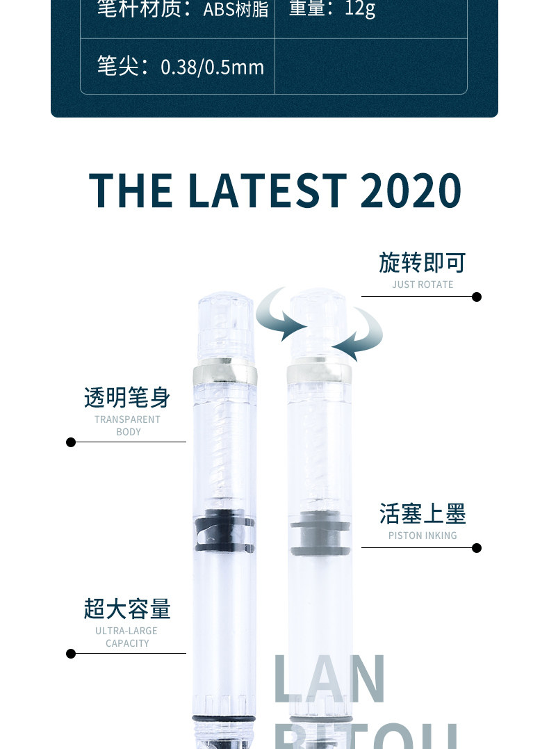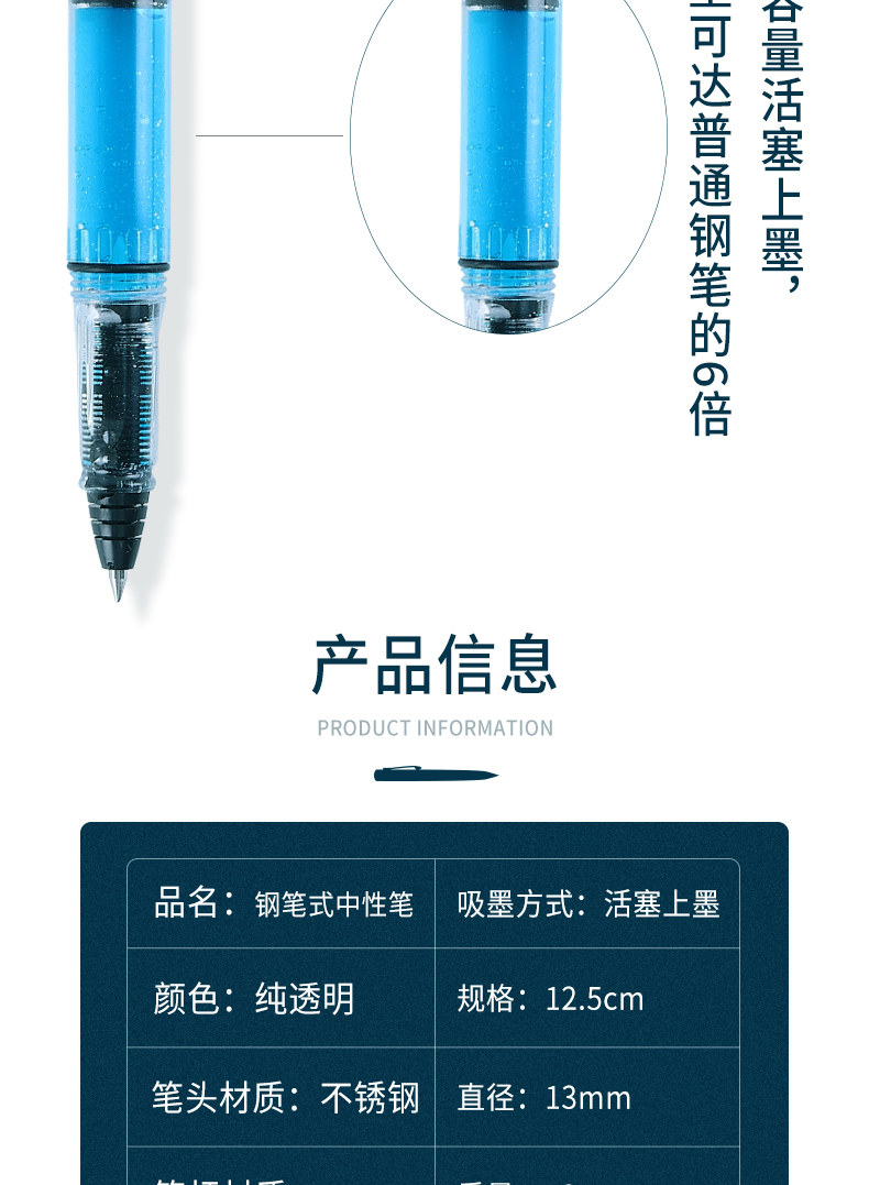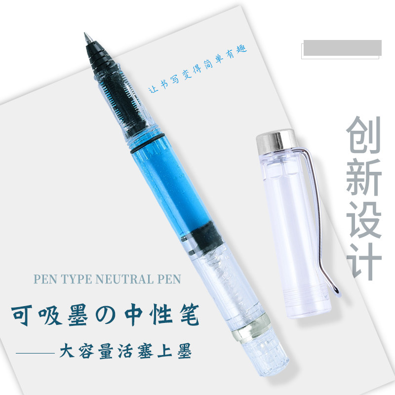 Вместительная и большая ручка-роллер, многоразовый поршень, шариковая ручка на водной основе, трубка, пуля для школьников, начальная и средняя школа, подходит для начинающих