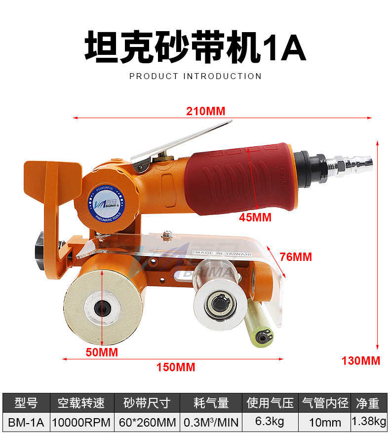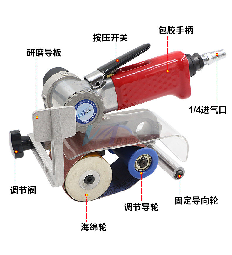 百马 BM-1A Пневматический песчаный ремень Машина наждачная бумага Полировка из нержавеющей стали.