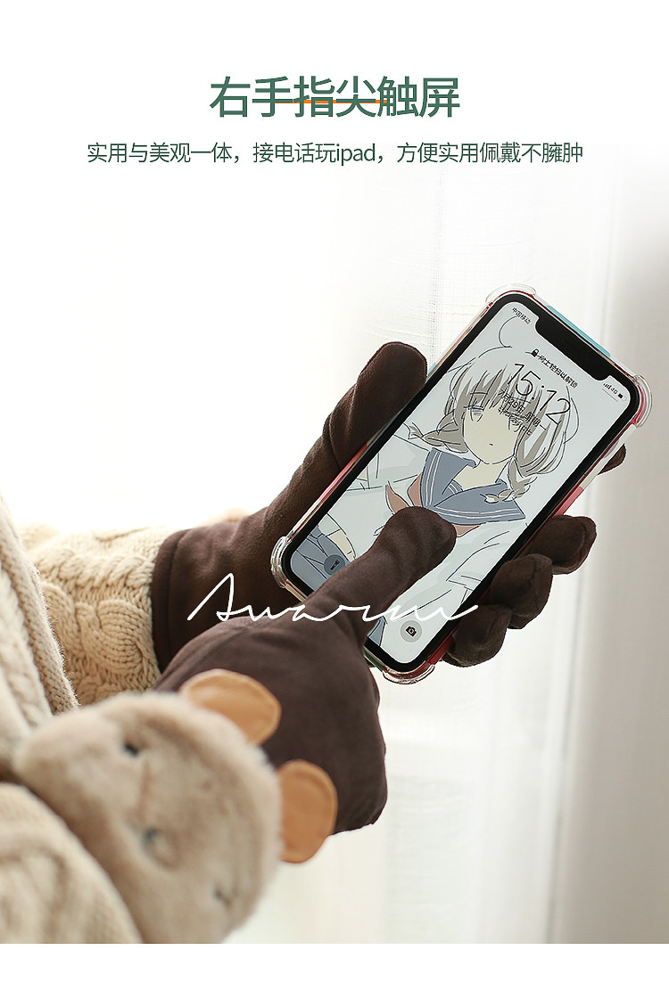 Зимние удерживающие тепло флисовые мультяшные перчатки