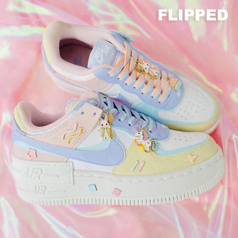 Перевернутый магазин домашняя адаптация 1970 -х годов AF1 милый макарон шестеро -колорная волна с длинной ткани наклейки