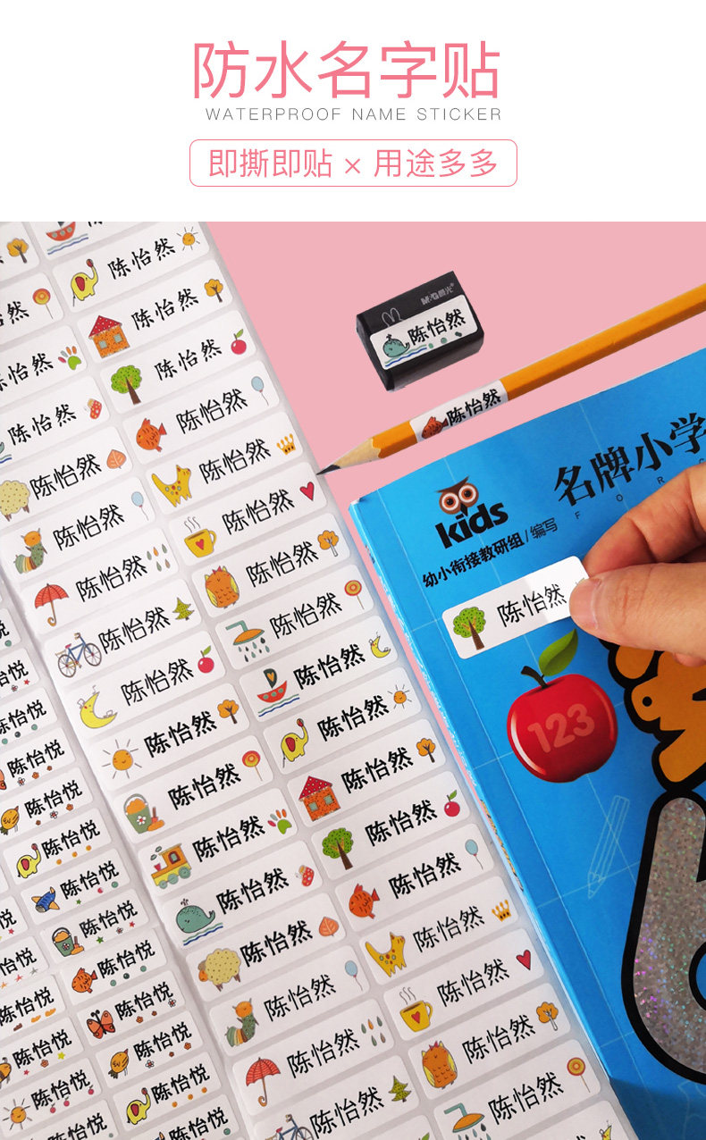 Водонепроницаемая именная наклейка, детская печать ручной работы для детского сада, делается под заказ