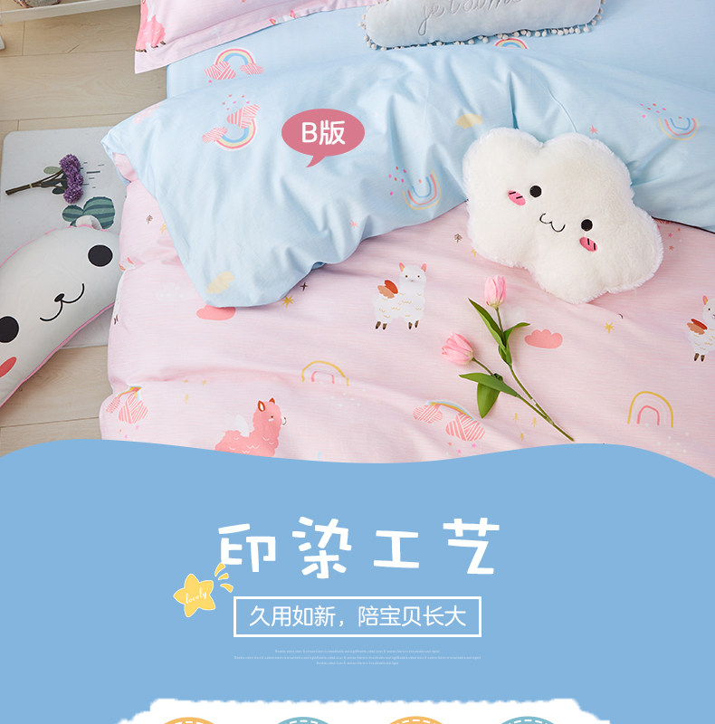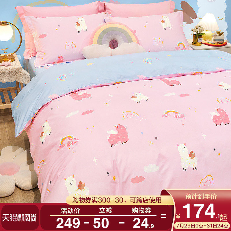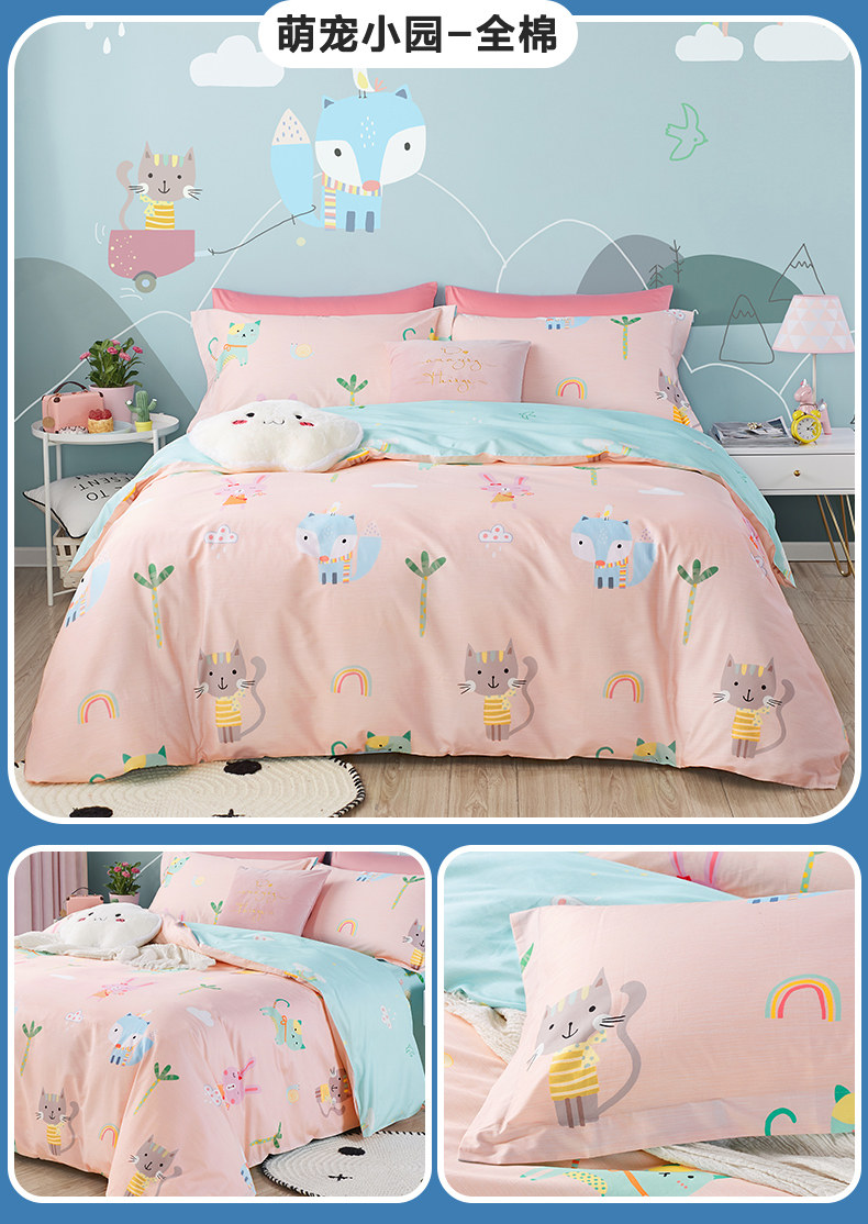 博洋 Хлопковый детский летний мультяшный комплект, милое розовое покрывало, простыня, пододеяльник, 4 предмета, 3 предмета
