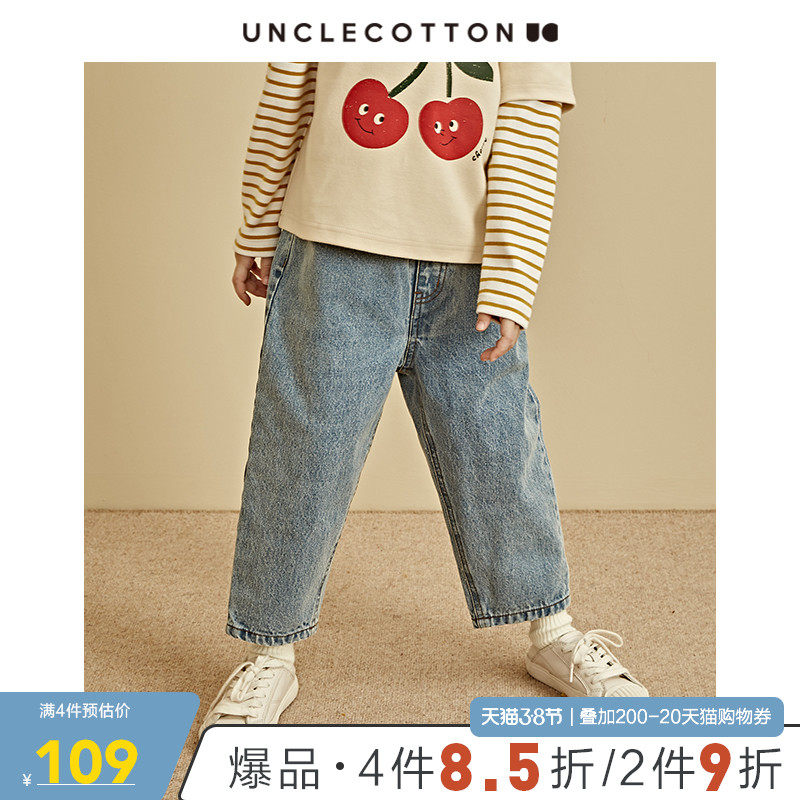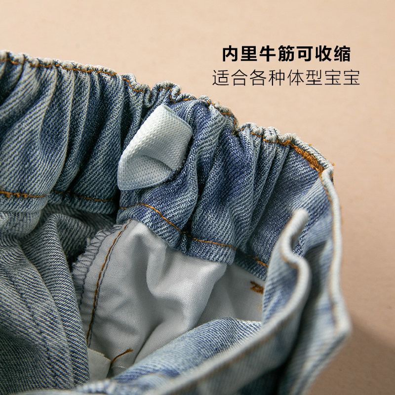 棉叔叔 Детские хлопковые летние штаны для мальчиков, джинсы, эластичная талия, в западном стиле