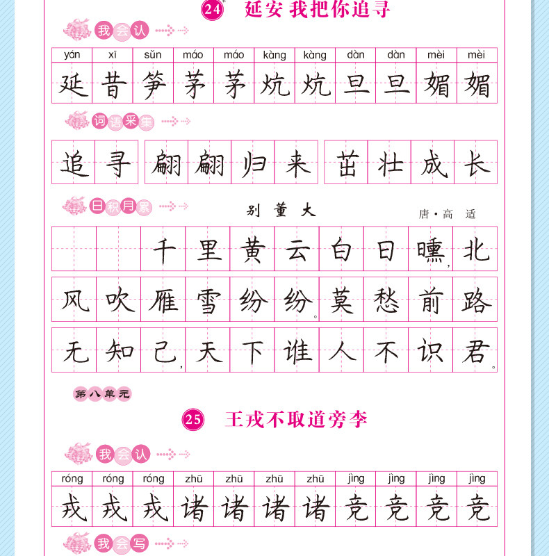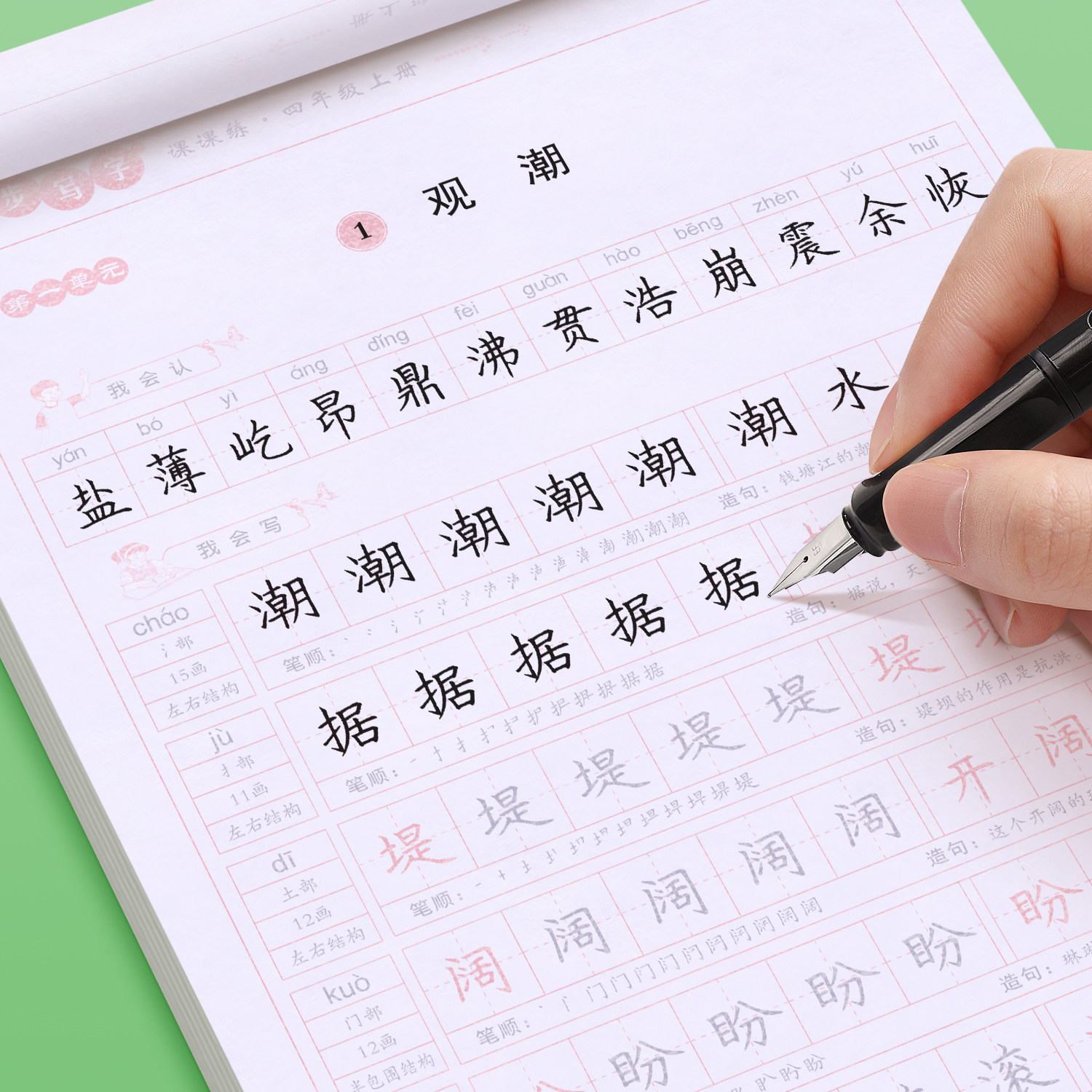 Крупная книжка для копии в четвертом классе People's Education Press Press Schools 'Том 1 и 2 отредактировали китайский английский учебник Синхронный композиционный кодирование книги «Книга» Регулярные скрипты Новые слова Строки, копирующие жесткую перо каллиграфию фонтан