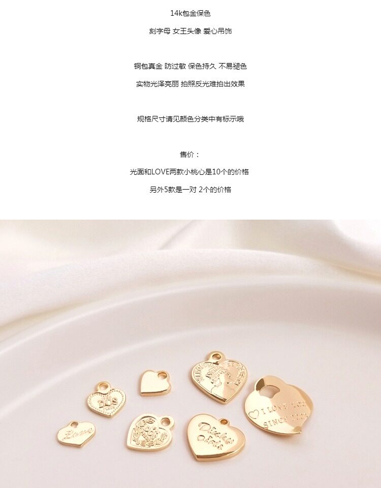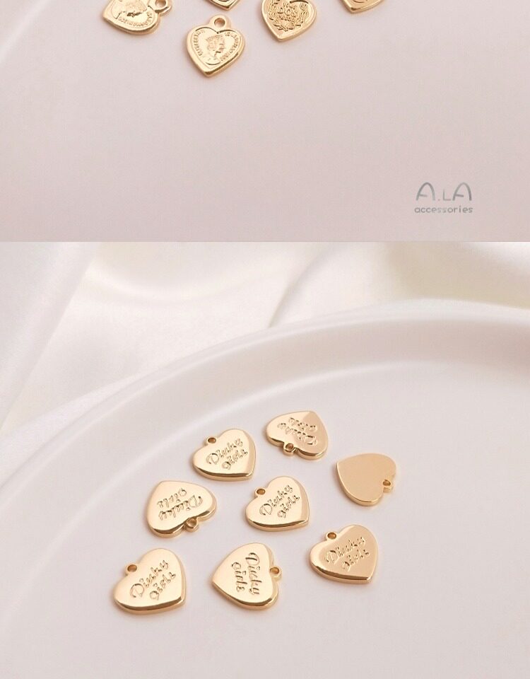 Подвеска в форме сердца с буквами, ювелирное украшение, серьги, 14 карат, золотой цвет, DIY