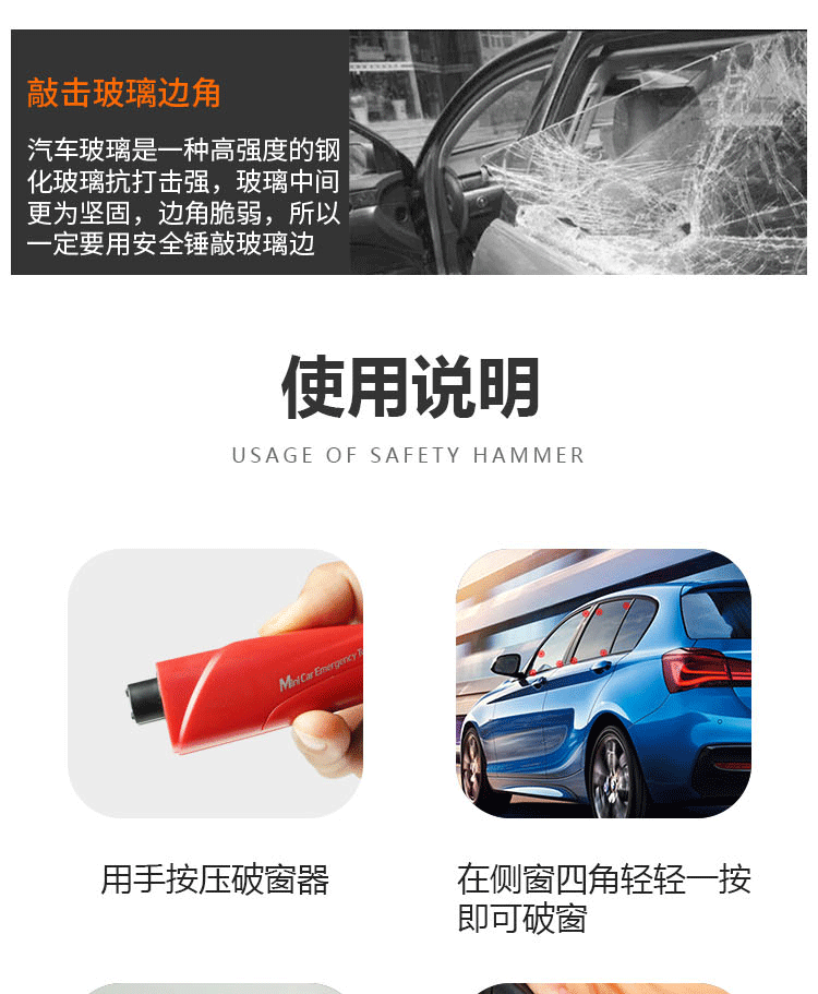 Автомобильный артефакт Artifact Artifact для многопрофессионального защитного молотка от вас с помощью секунды раздавленного и разбитого стекла, чтобы выжить