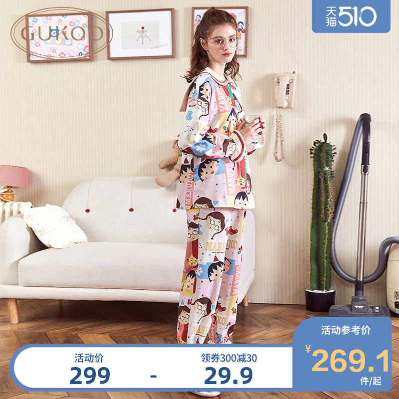 Gukoo/果壳 Осенняя пижама, хлопковый лонгслив, мультяшный комплект