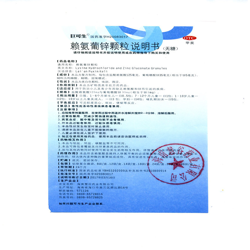 巨可生 Лизаминовые частицы цинка добавки лизина с лизином