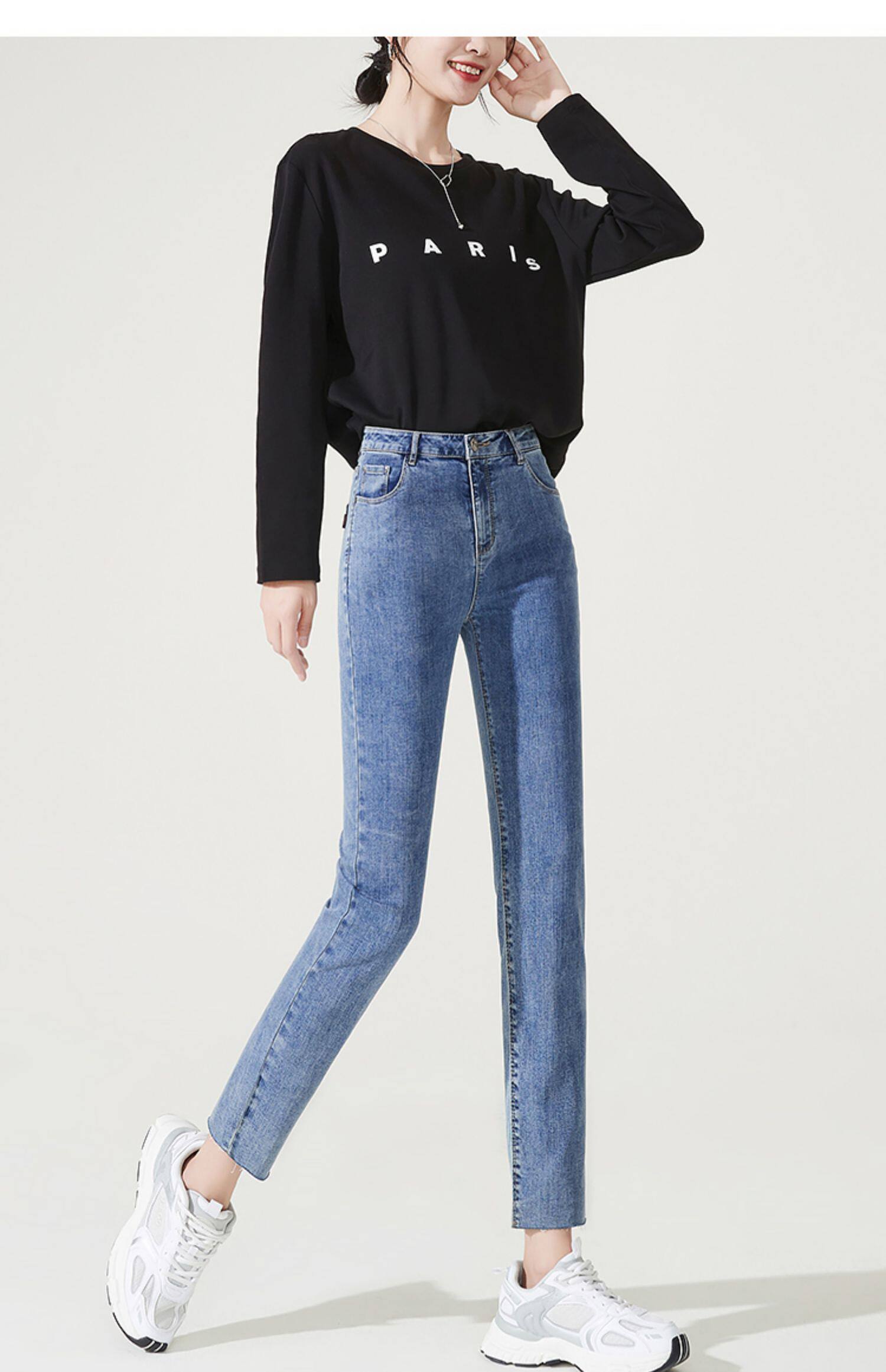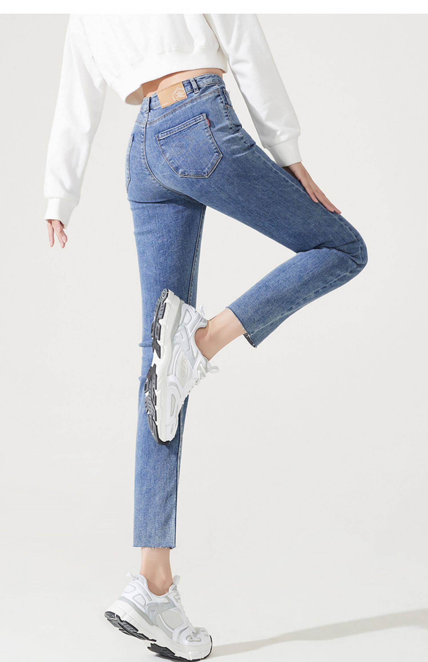 Осенние модные прямые свободные джинсы, эластичные штаны, 2023, свободный крой