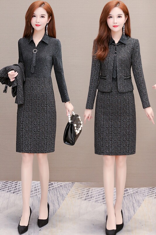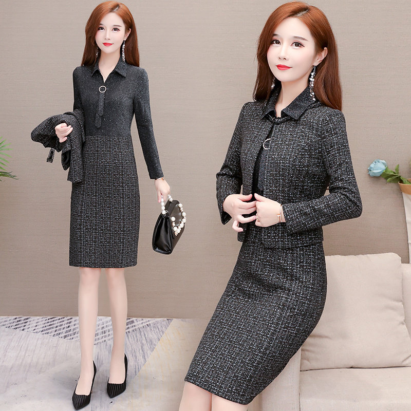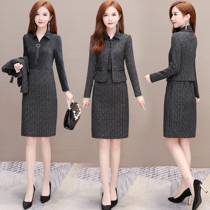 Комплект, осеннее демисезонное платье, небольшая юбка, 2021 года, подходит для подростков, в стиле Шанель, в западном стиле