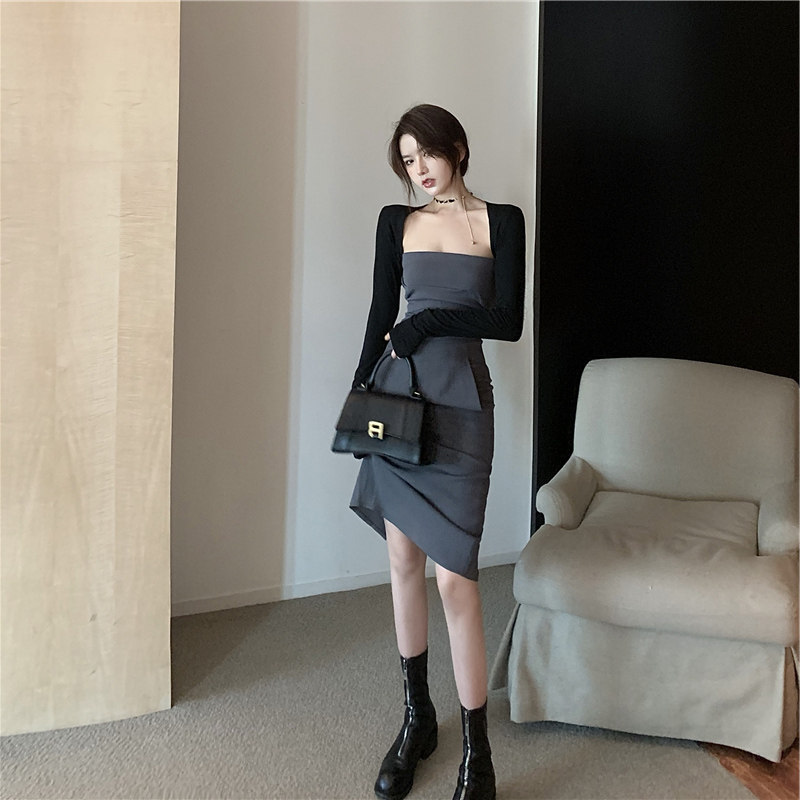Осеннее платье, юбка, комплект, большой размер, 2021 года, легкий роскошный стиль, яркий броский стиль
