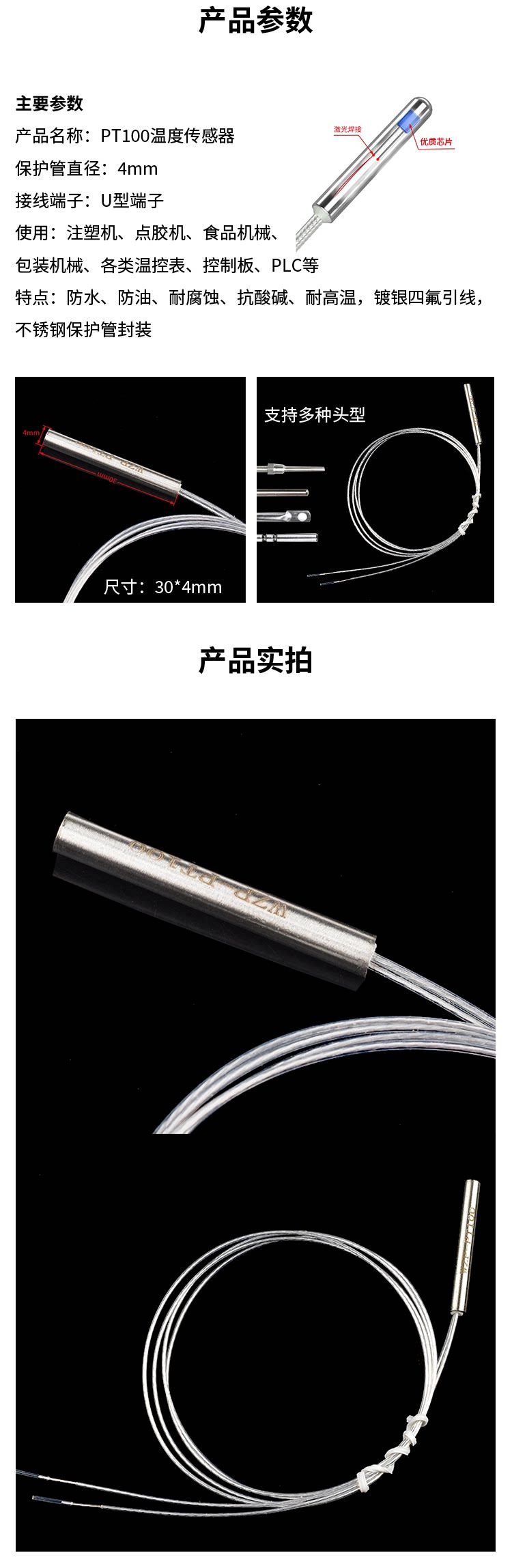 Термометр из нержавеющей стали, датчик, платина 100 пробы, платина 100 пробы