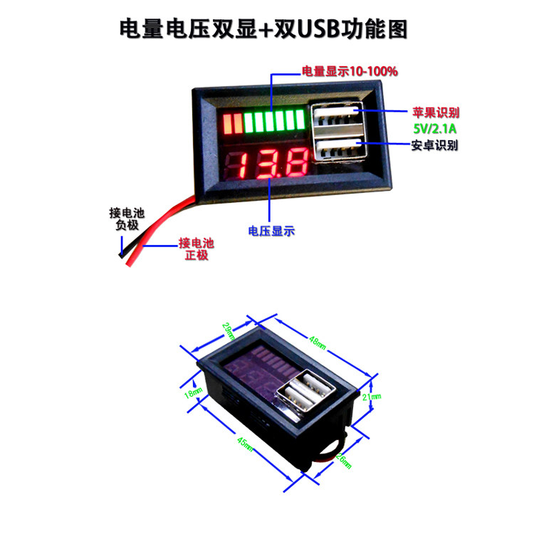 2. Вывод USB: 5V/2A (макс), два порта и 2A (USB -настройка распознавания Apple, один набор распознавания Android)