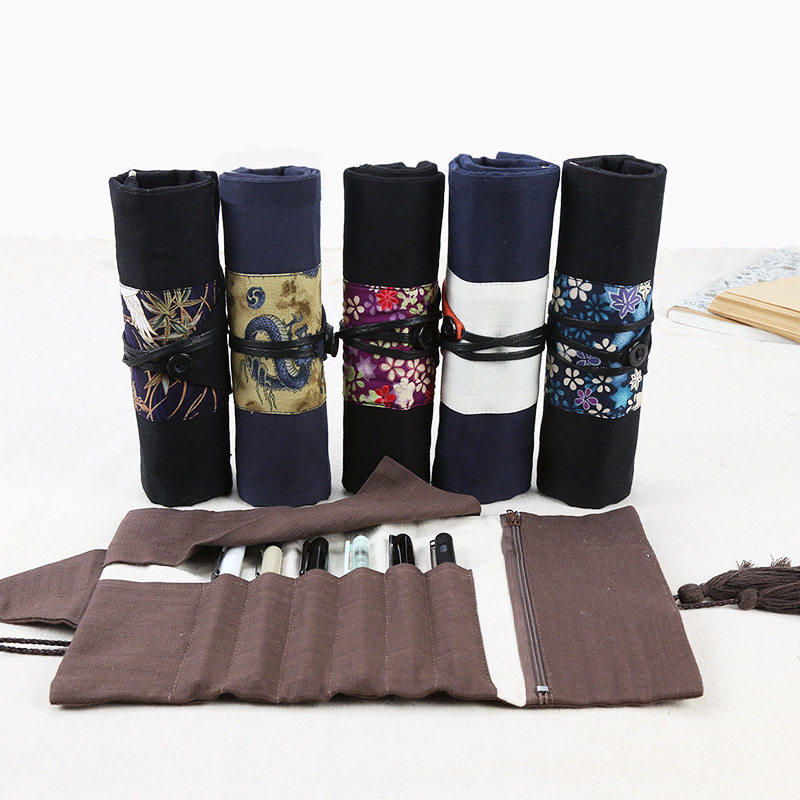 Ретро штора, ручка, пенал, шоппер, вместительная и большая ткань, сумка, креативная точилка подходит для мужчин и женщин для школьников, простой крой, для средней школы
