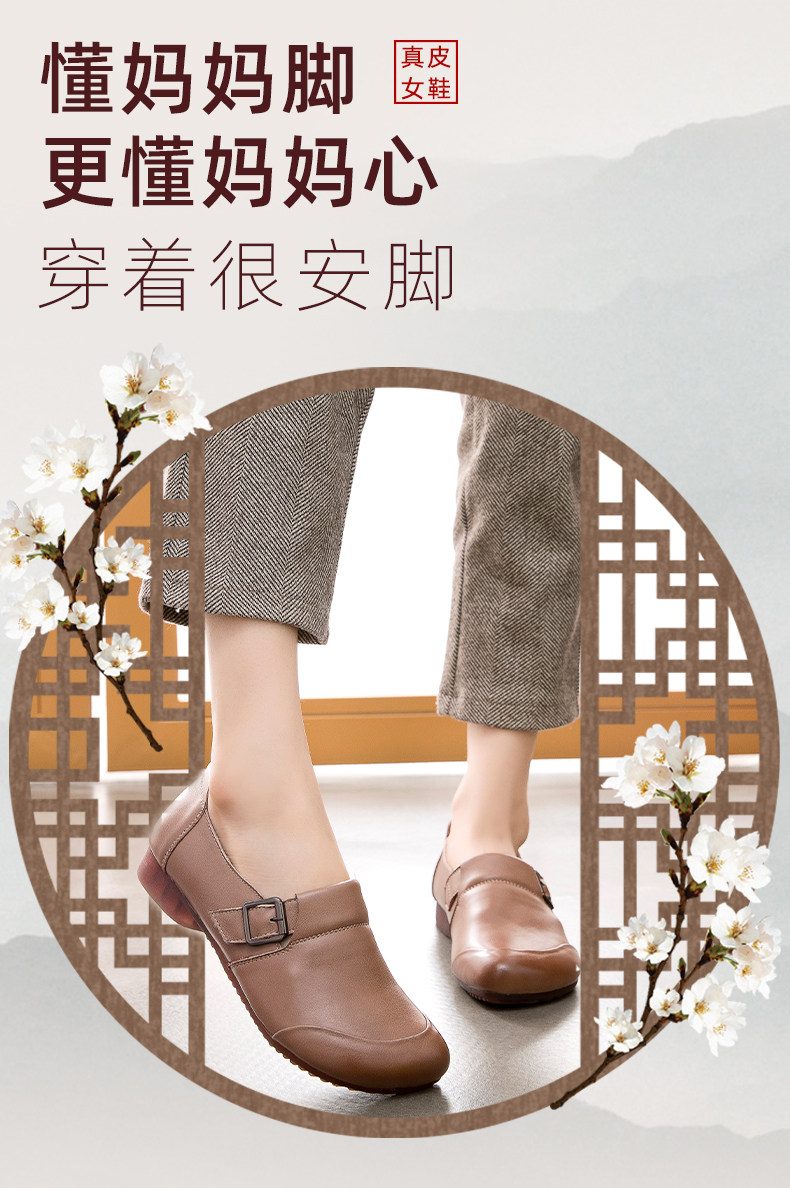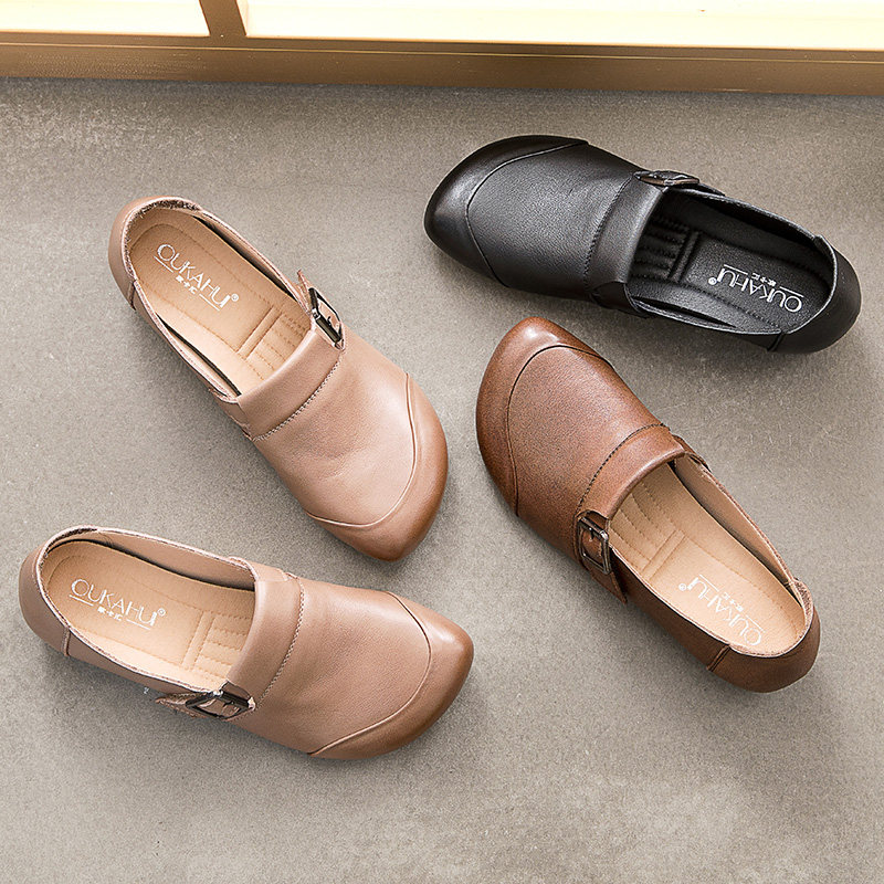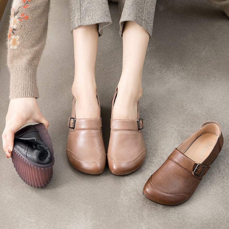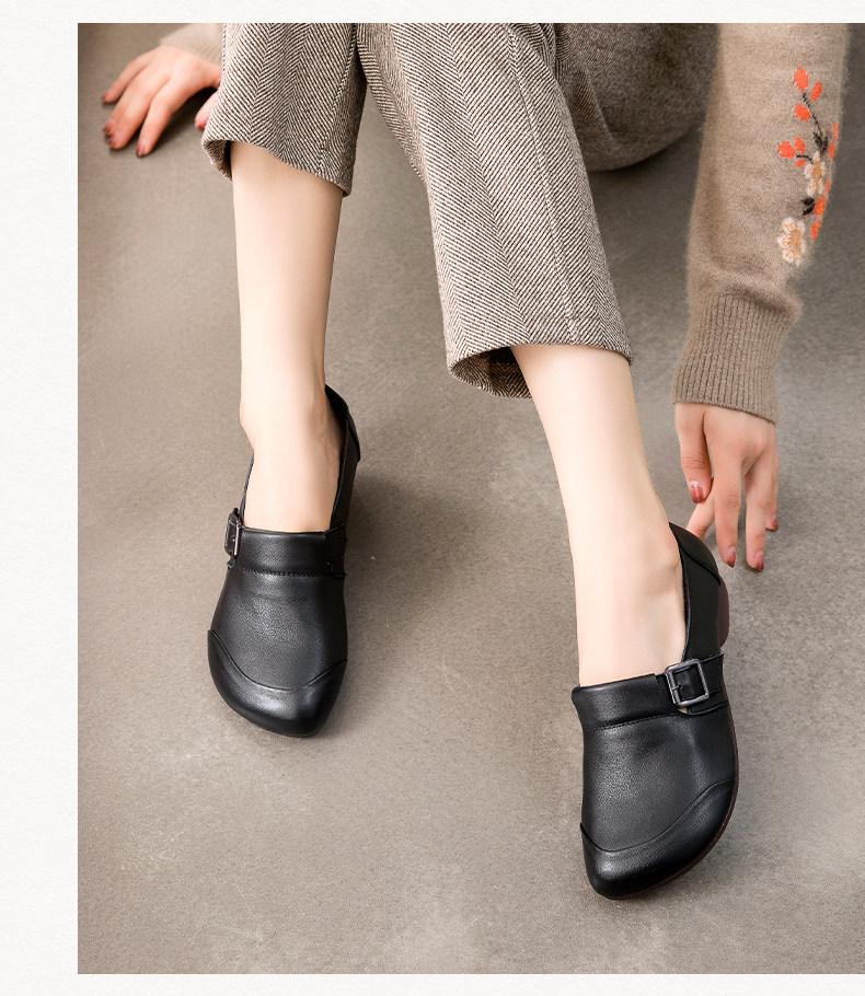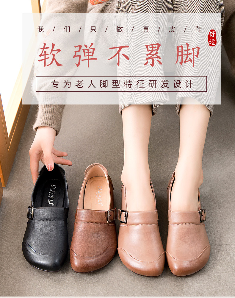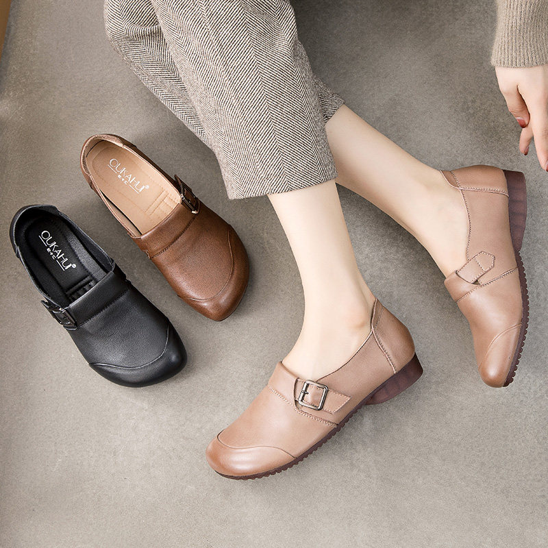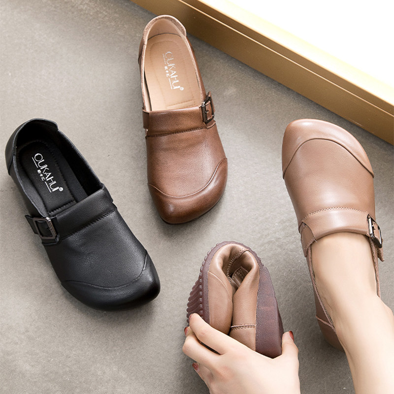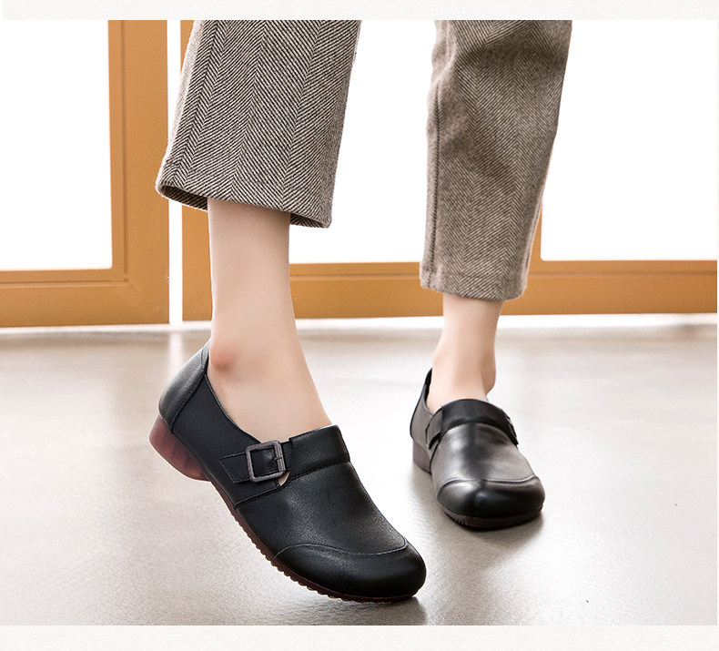 Комфортная плоская подошва обувь для матери для кожаной обуви, мягкая подошва, из натуральной кожи, для среднего возраста, осенняя