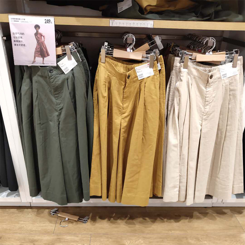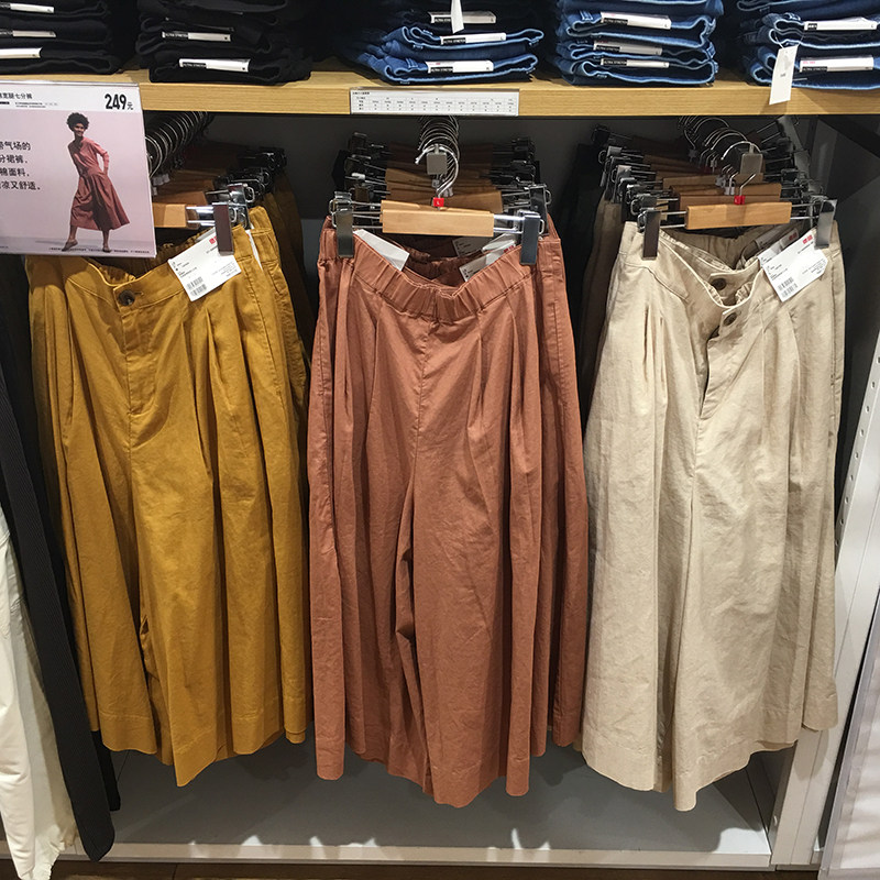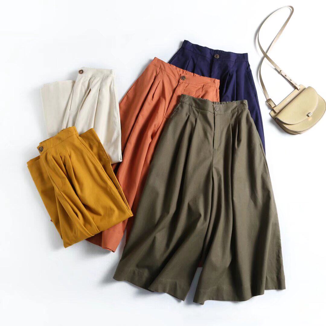 Покупка товаров женские широкие брюки из хлопка и льна, повседневные прямые брюки на одну треть, универсальные свободные широкие брюки R 424945 / 436595