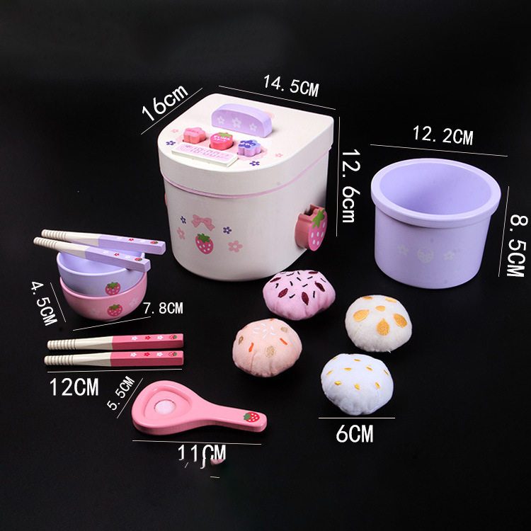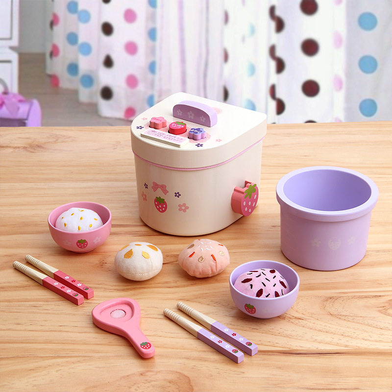 Деревянная реалистичная семейная детская кухонная утварь, игрушка, рисоварка для мальчиков и девочек, комплект