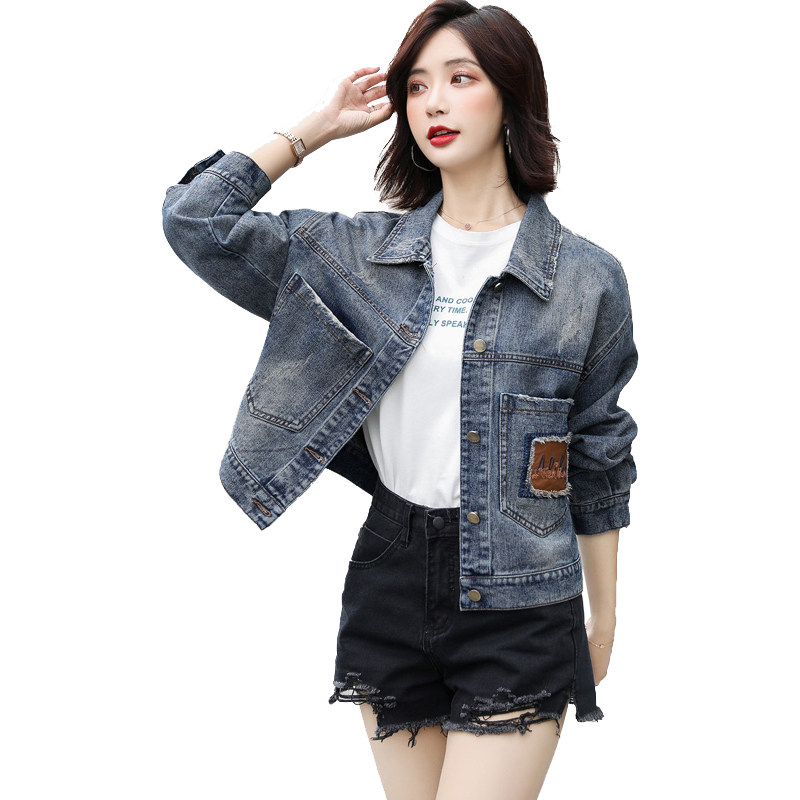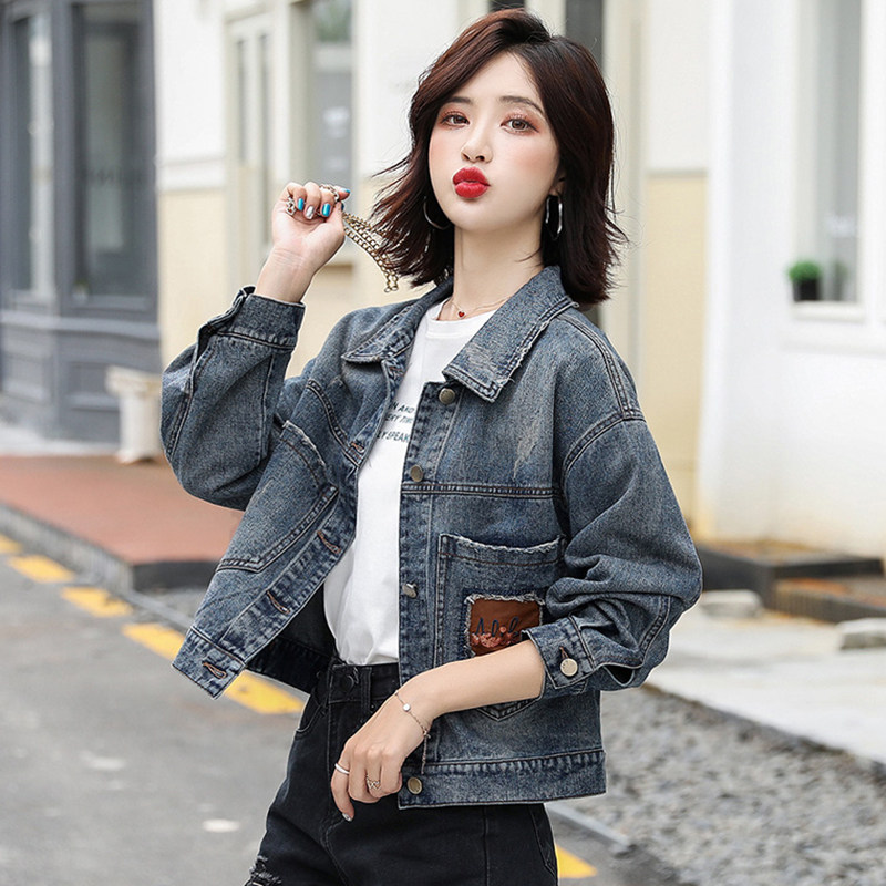 Джинсовая весенняя осенняя короткая куртка, 2021 года, городской стиль, в корейском стиле, оверсайз, в западном стиле