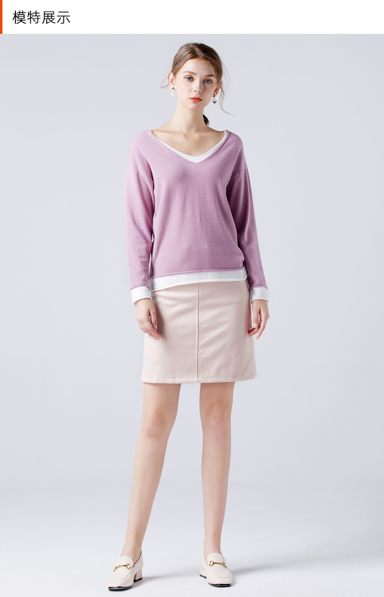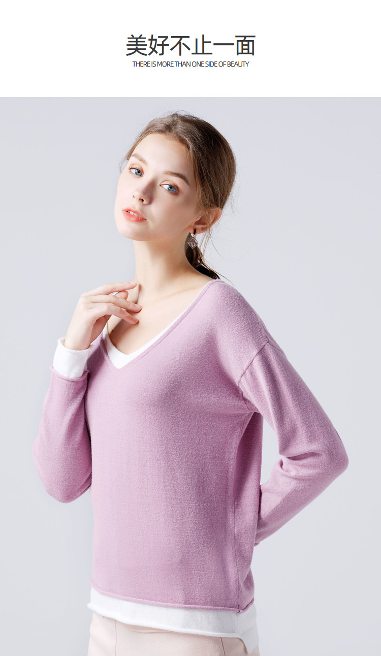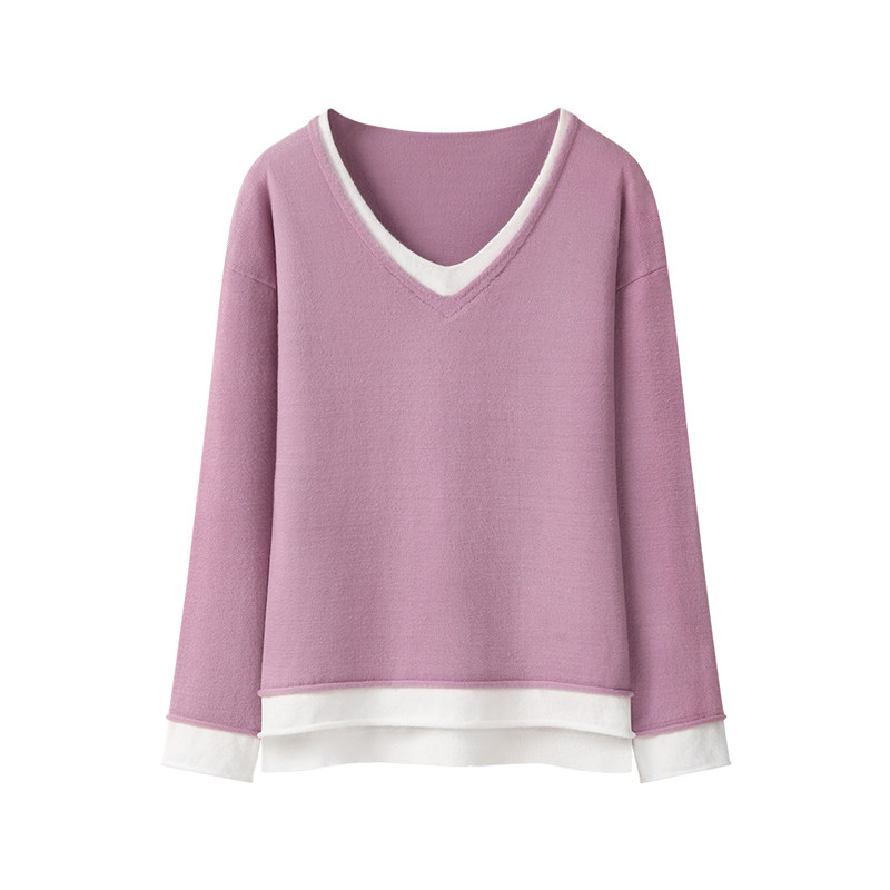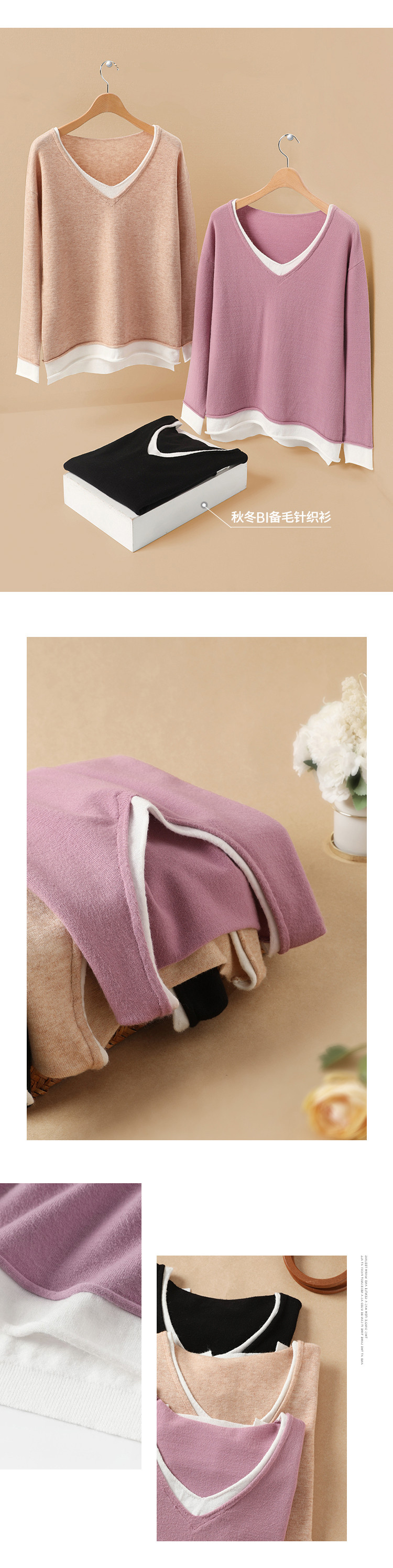 艾米恋 Осенний демисезонный свитер, лонгслив, трикотажный комплект, свободный крой, V-образный вырез