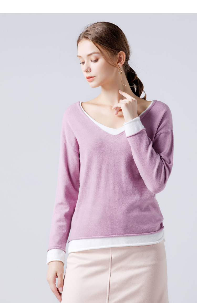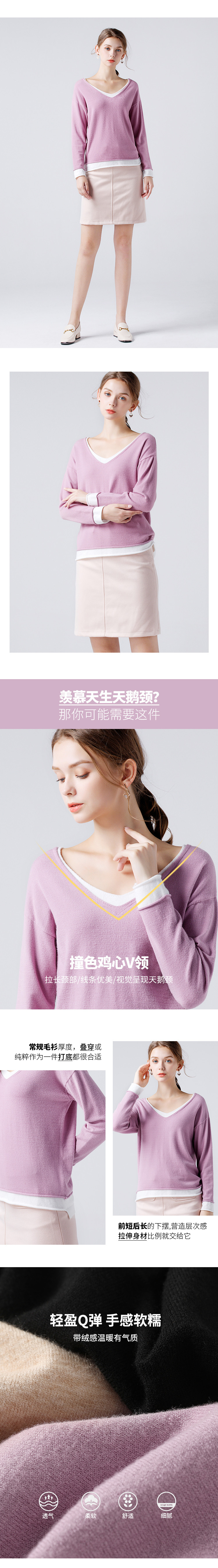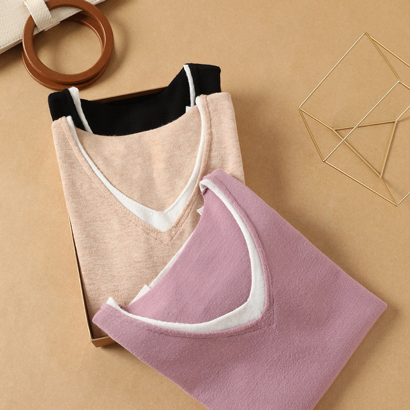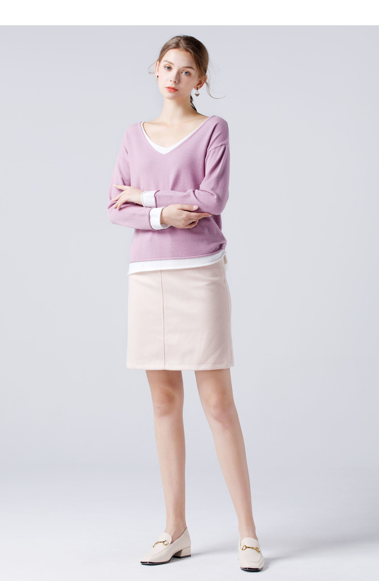 艾米恋 Осенний демисезонный свитер, лонгслив, трикотажный комплект, свободный крой, V-образный вырез