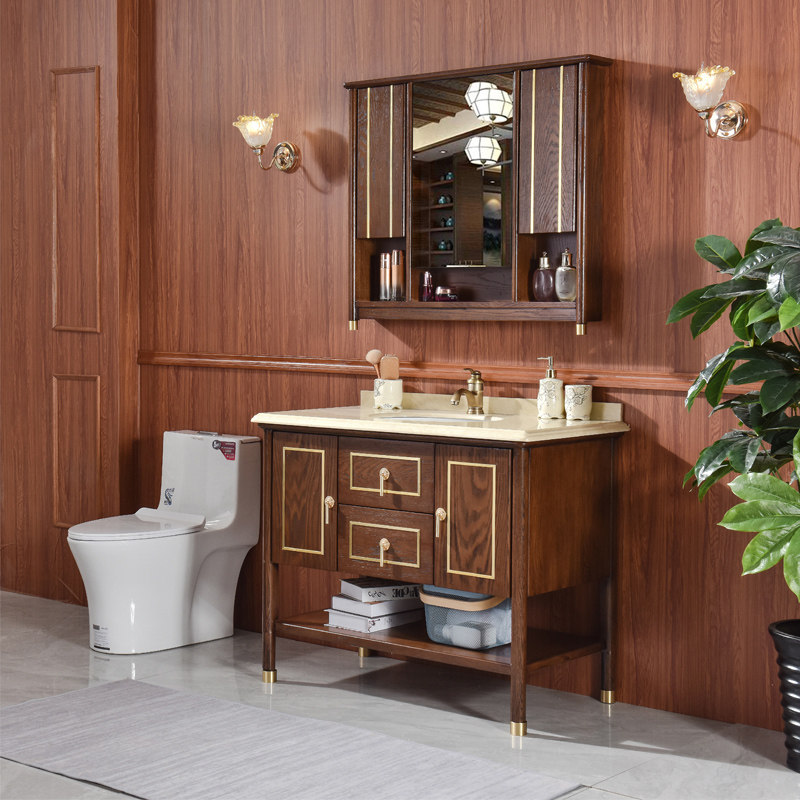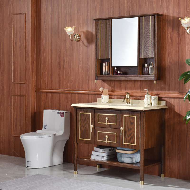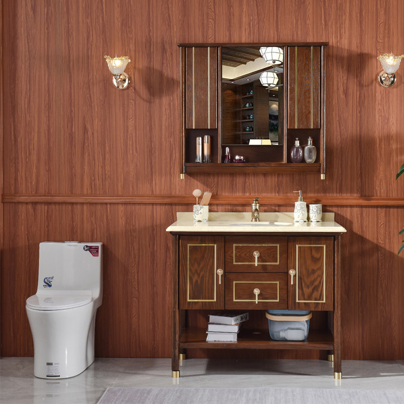 Современный китайский шкаф для ванной комнаты красный дуб раковина раковина каменная плита для мытья бассейн Комбинированное дерево световое