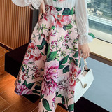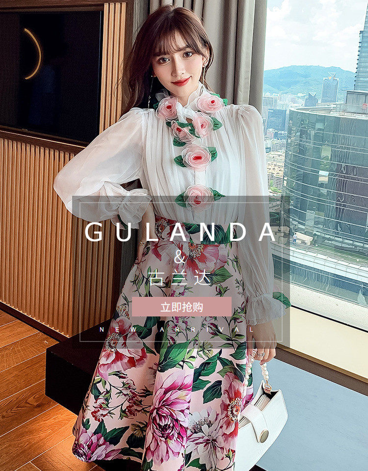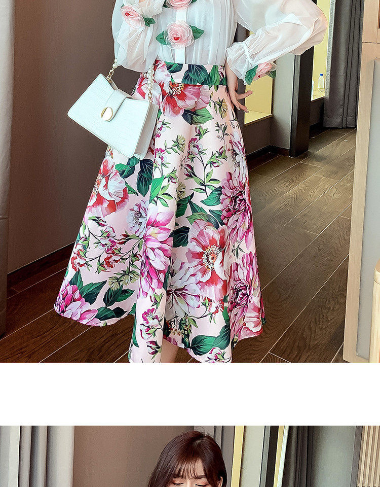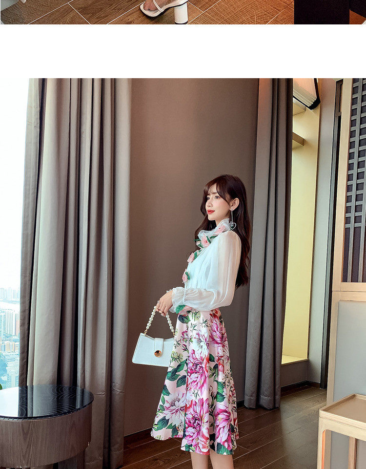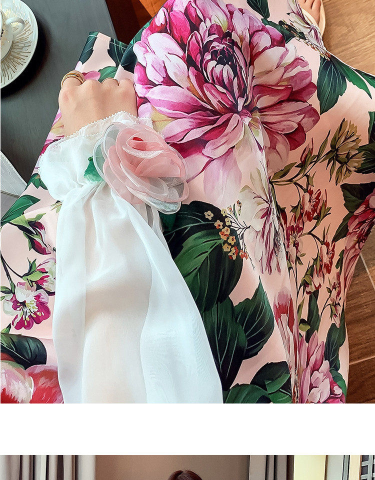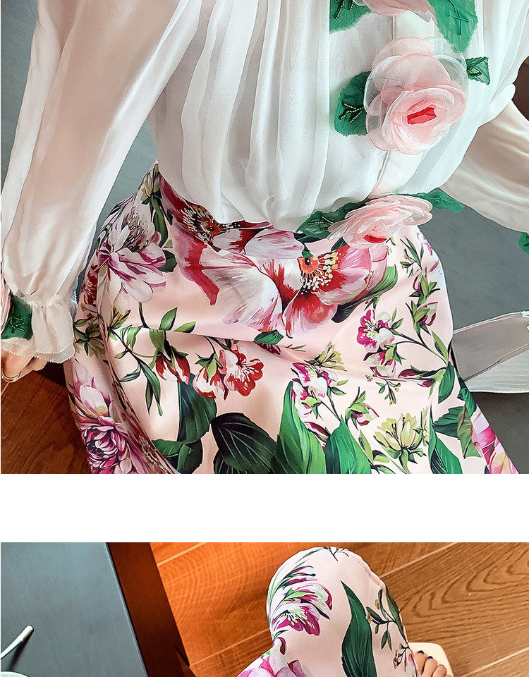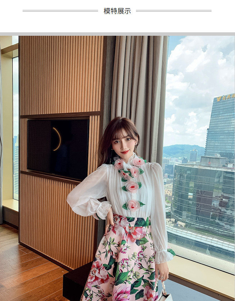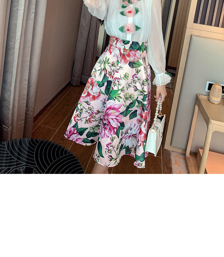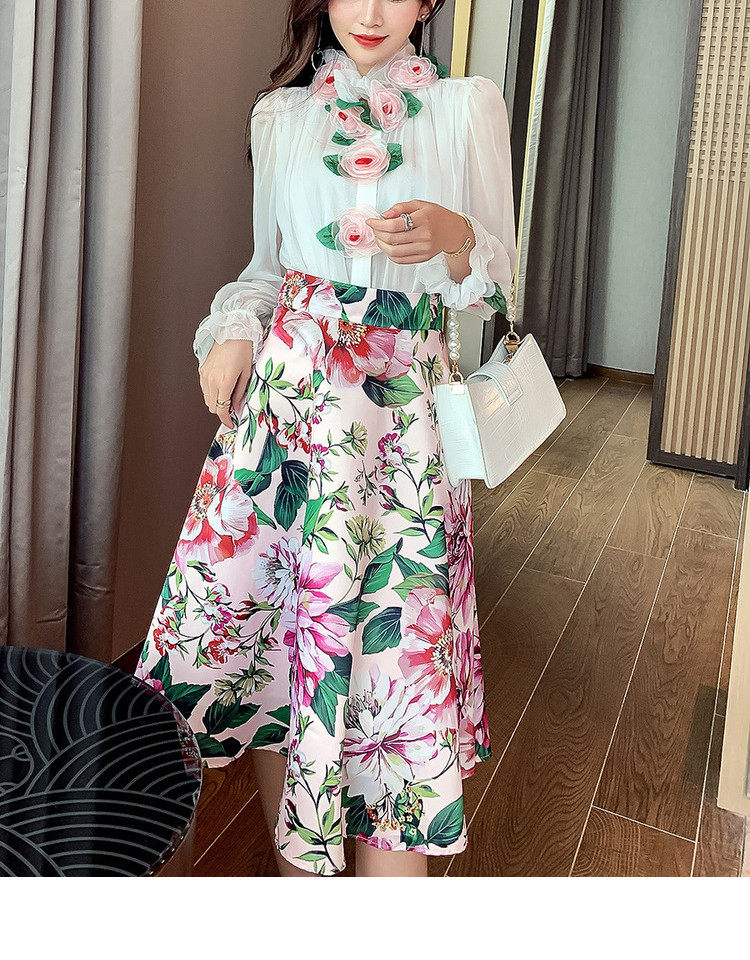 Рубашка, белый фонарь, шелковый лонгслив, комплект, в стиле Шанель, изысканный стиль, яркий броский стиль, в западном стиле, розы, в цветочек